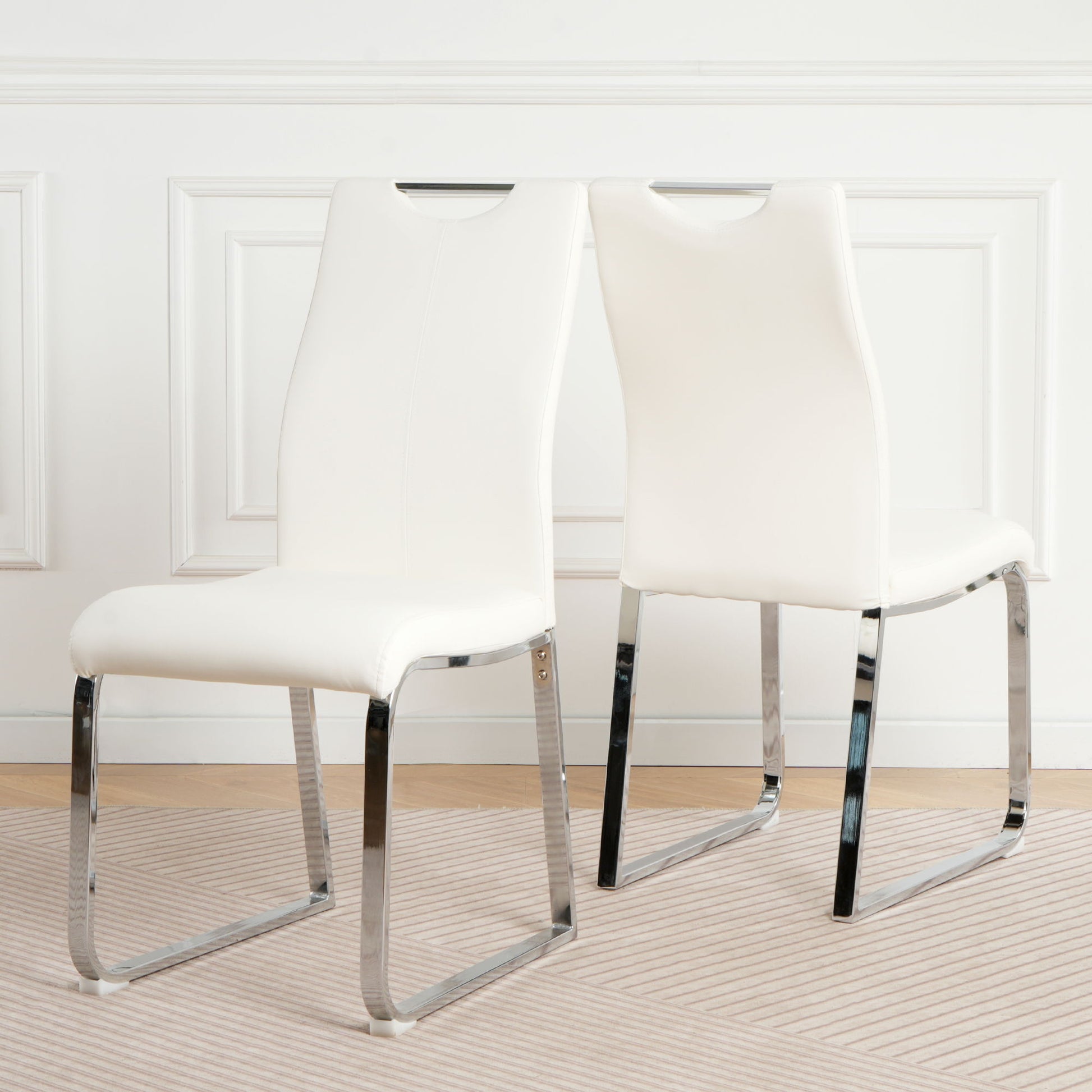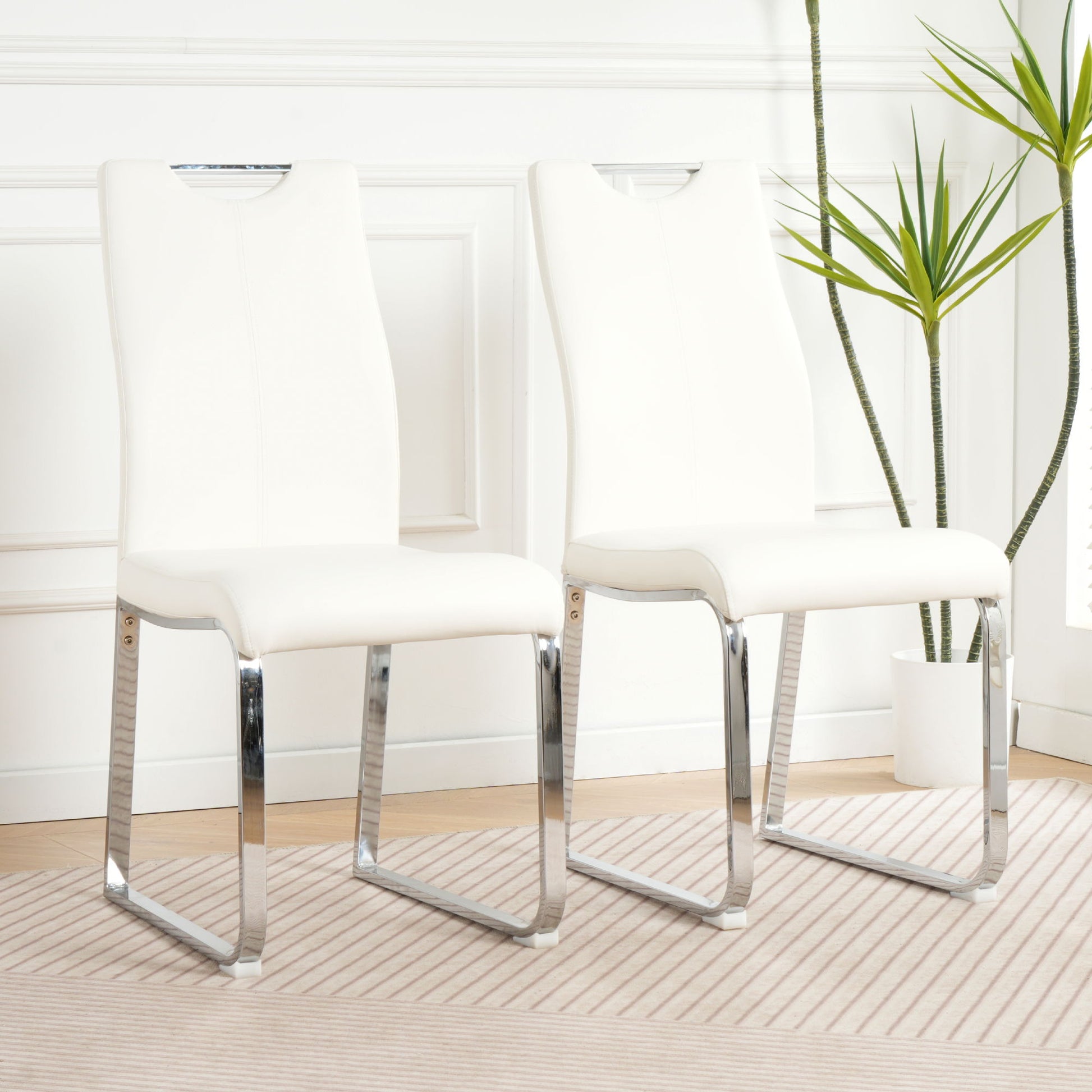 Modern Dining Chair (Set of 2) With Cloth Upholstery And Electroplated Metal Legs - White