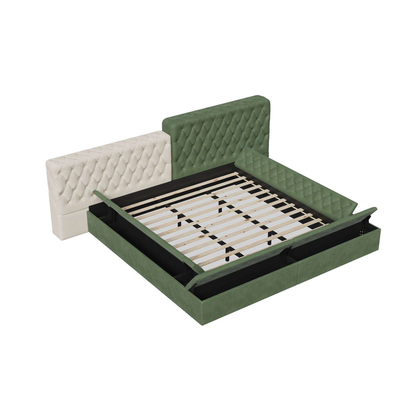 King Modern Upholstered Platform Bed With Storage Space, Sturdy And Stable Solid Wood Frame, Polyester Fabric, Easy To Assemble - Green