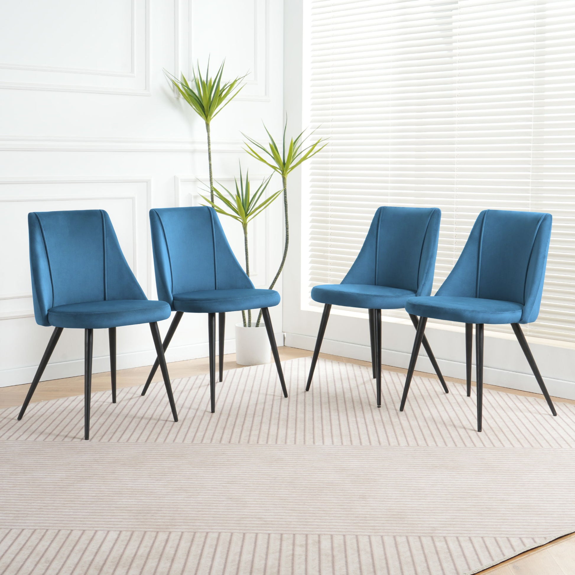 Modern Velvet Dining Chair Set Fabric Upholstery, Metal Legs (Set of 4) - Blue / Black
