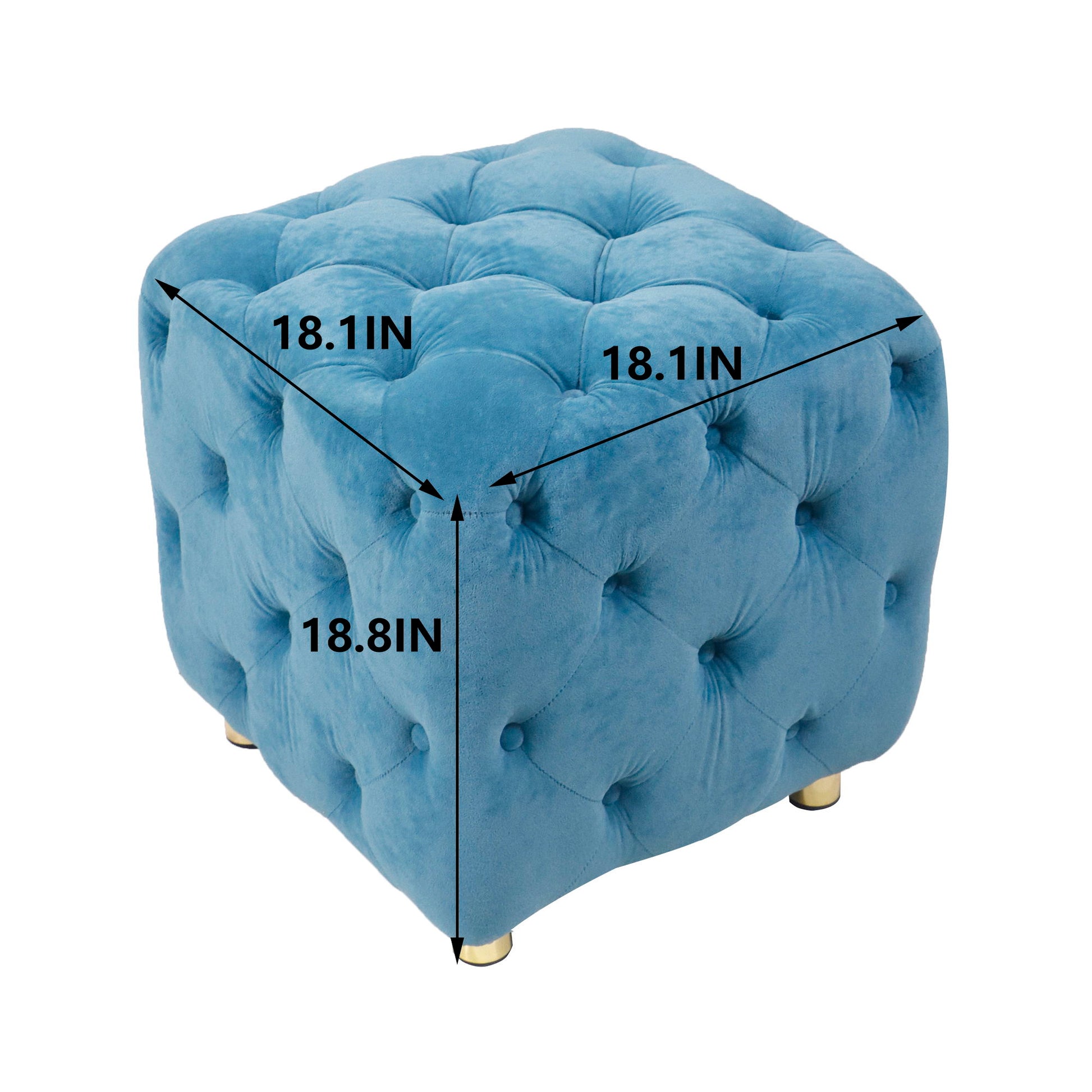 Modern Velvet Upholstered Ottoman, Exquisite Small End Table, Soft Foot Stool, Dressing Makeup Chair, Comfortable Seat For Living Room, Bedroom, Entrance - Blue