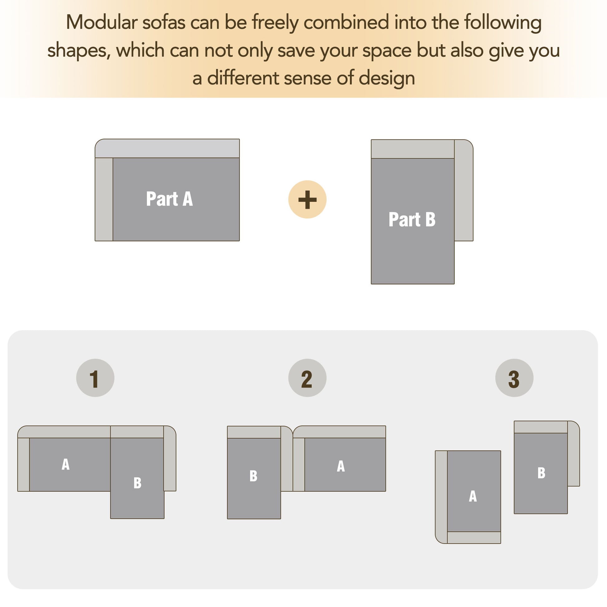 Modular Combination Living Room Sofa Set, Modern Minimalist Sofa, Living Room Upholstered Sofa Bed, Bedroom, 2 Pieces Computer Free Combination, L - Shaped