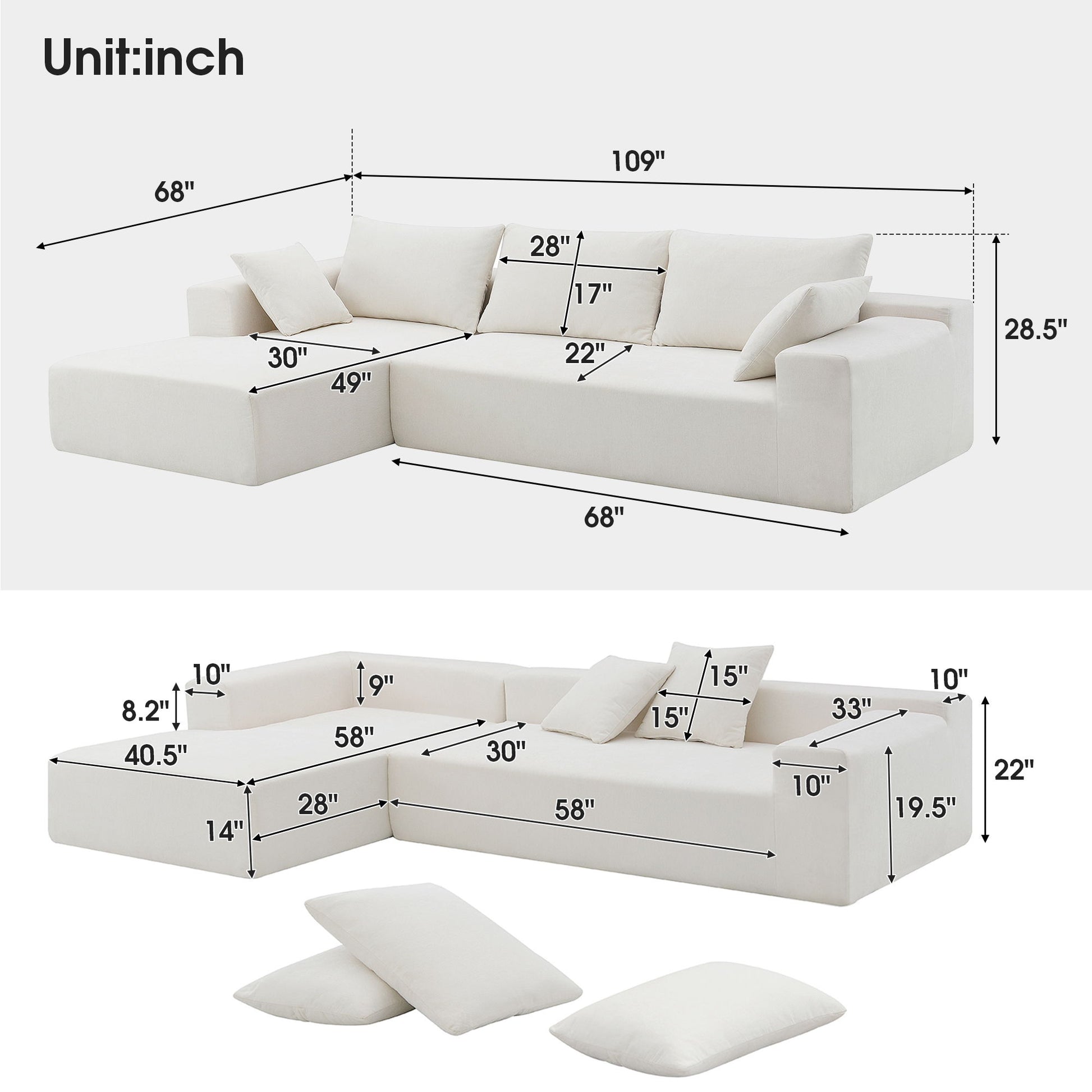 Modular Sectional Living Room Sofa Set, Modern Minimalist Style Couch, Upholstered Sleeper Sofa Salon, 2 Piece Free Combination, L-Shape - Cream