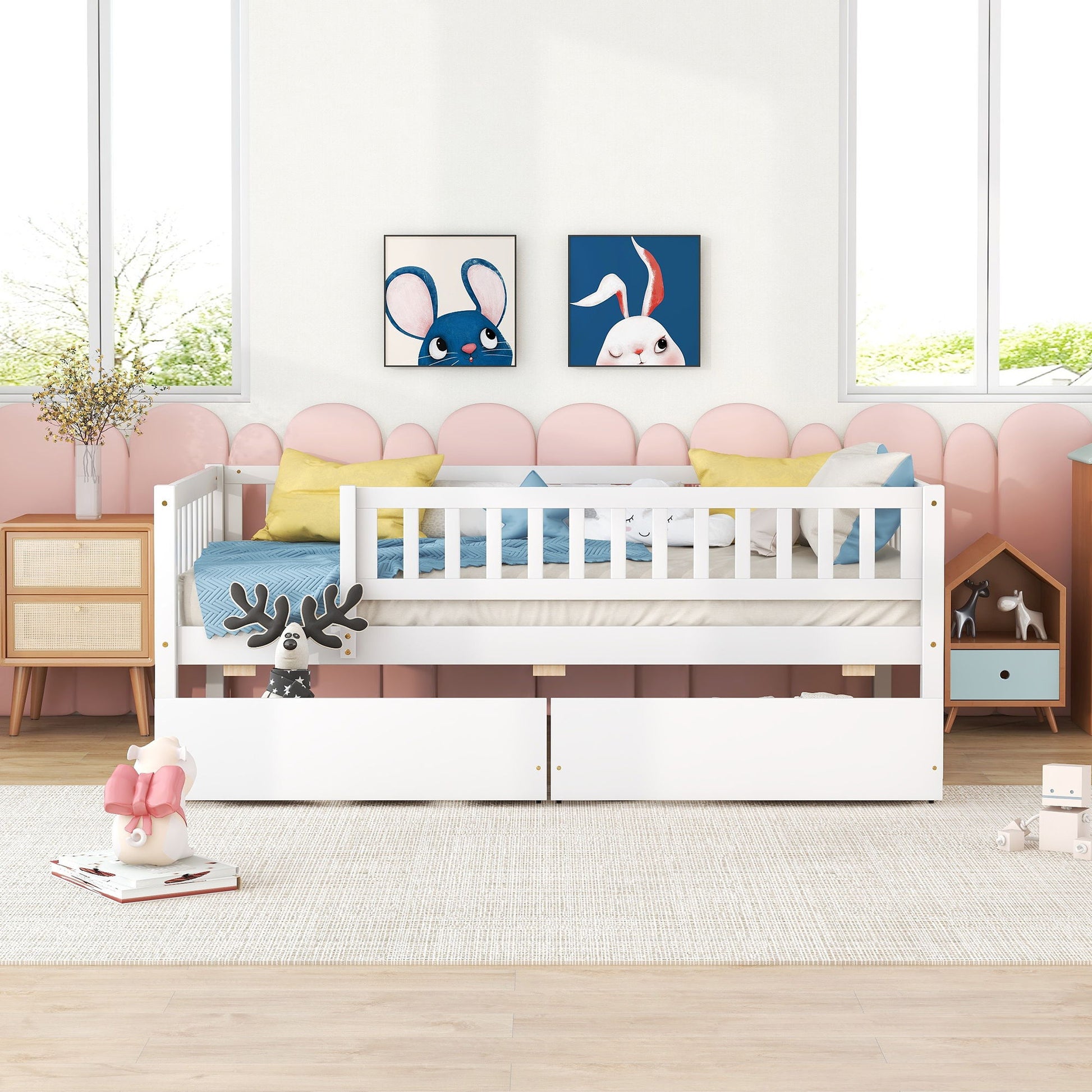 Space-Saving: This - daybed features two spacious drawers, providing extra storage space when needed. Perfect for organizing books, toys, or other essentials, making room tidying effortless.