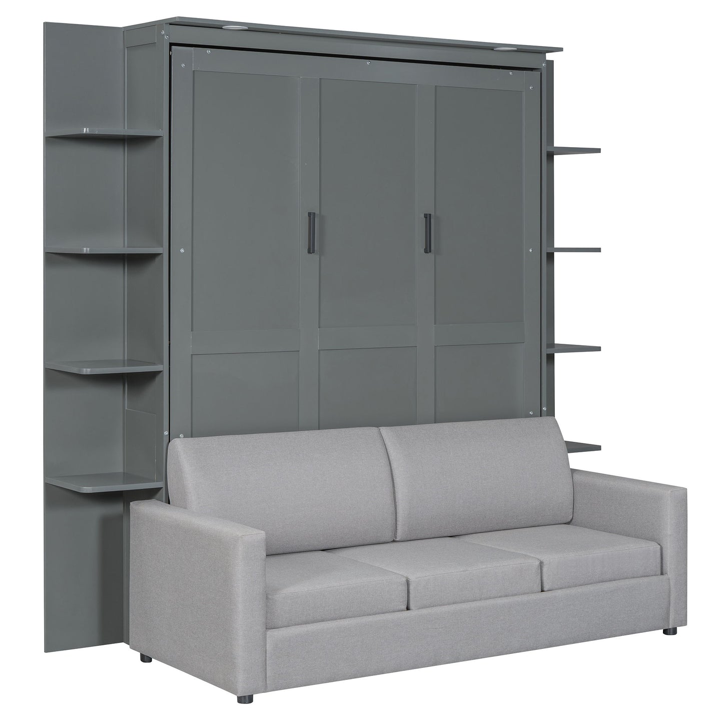Queen Size Murphy Bed Space Saving Wall Bed With Sofa - Gray