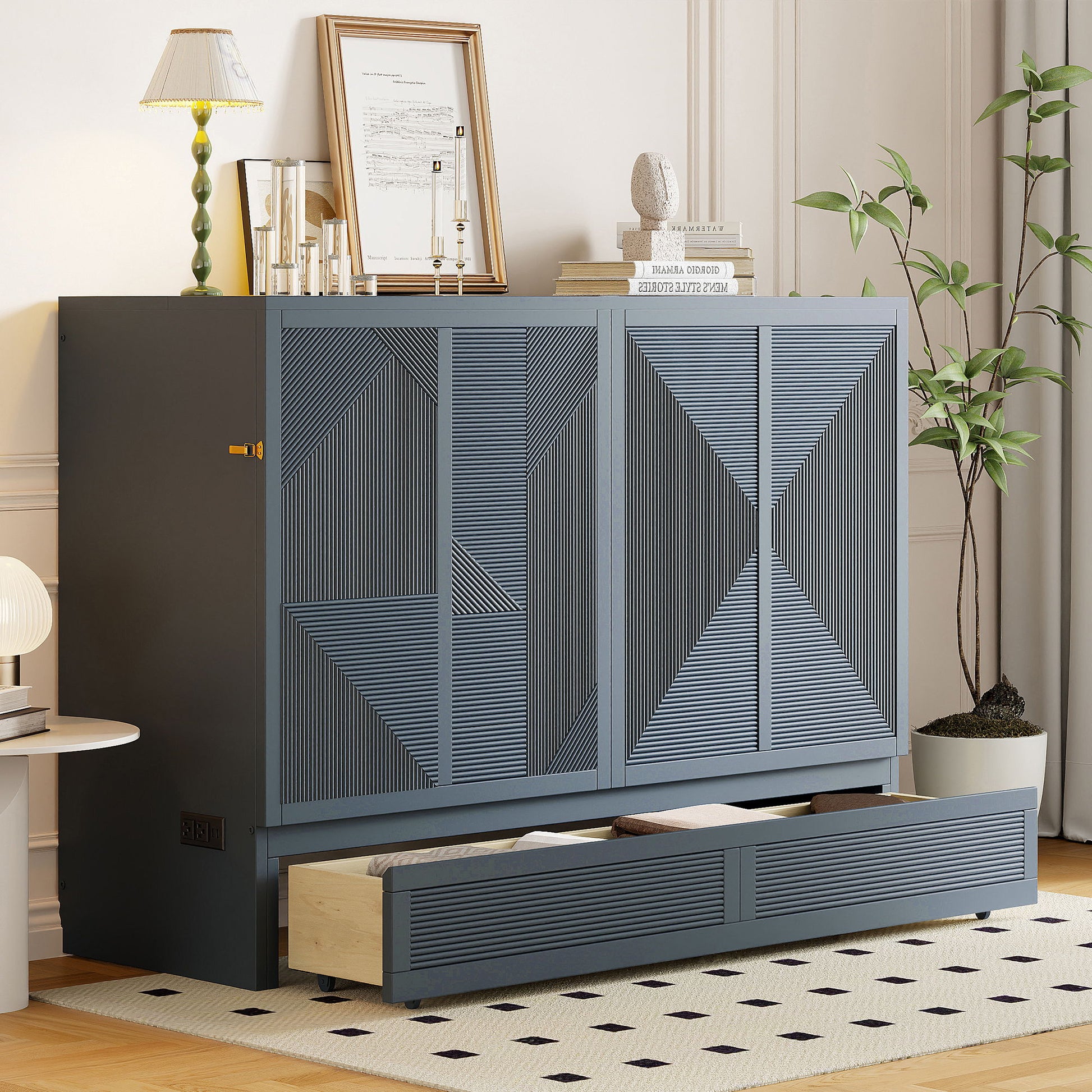 Murphy Bed With Large Drawer, USB Ports And Outlets