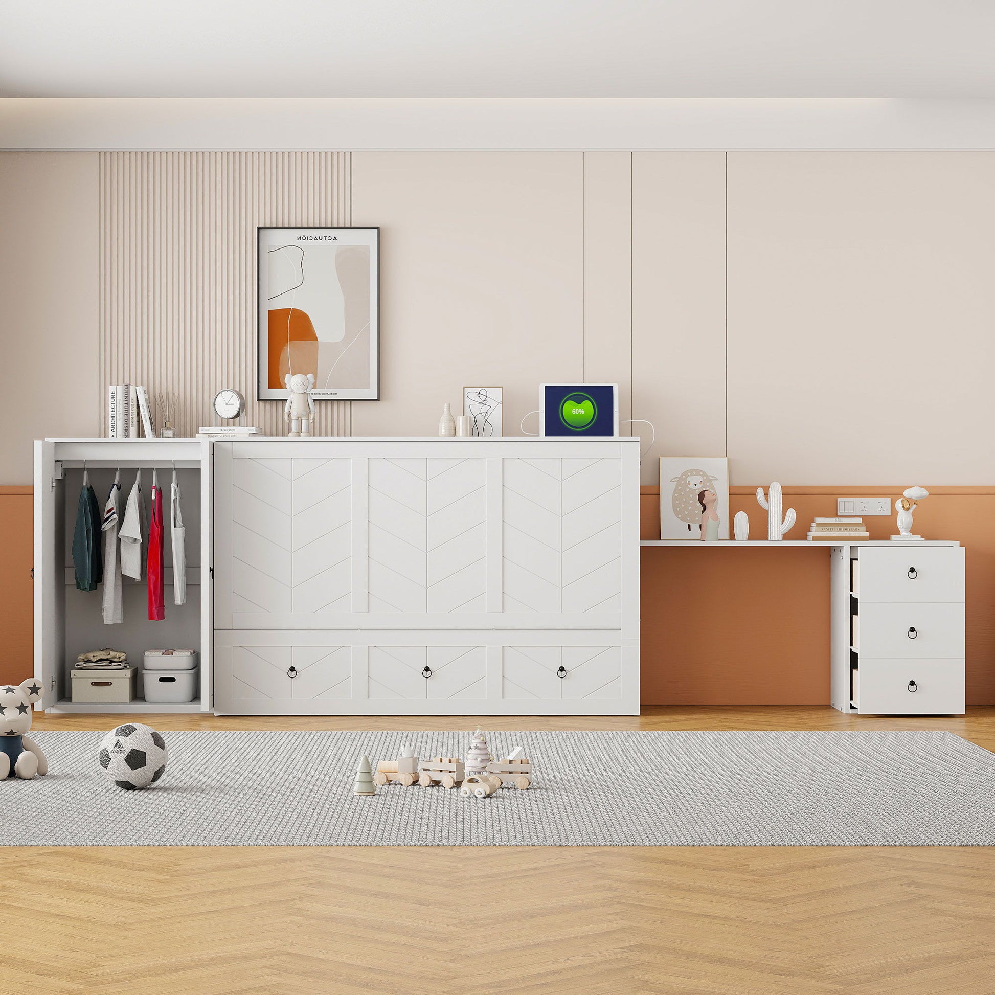 Murphy Bed With USB Port, Large Drawer, And Wardrobe / Desk Combo Versatile Cabinet Bed