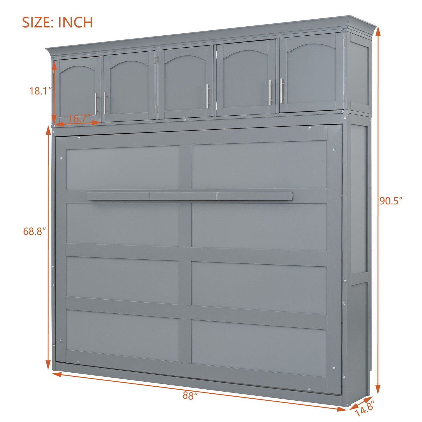 Queen Size Murphy Modern Bed With Top Cabinets For Space Saving And Comfort - Gray