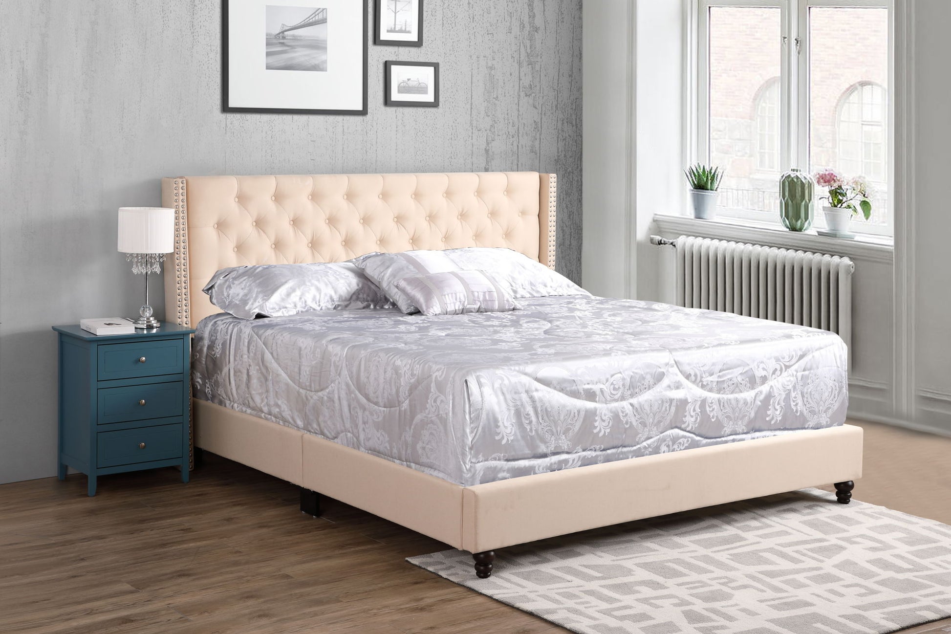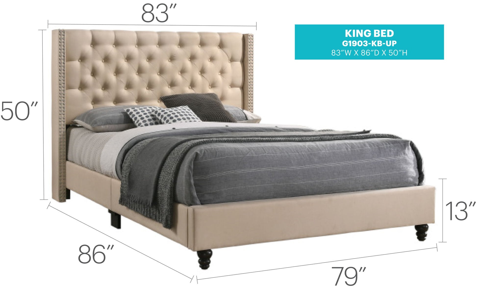 - Deep Tufting and Nailhead Trim: Upholstered bed features elegant deep tufting and hand-applied nailhead trim for a luxurious look.