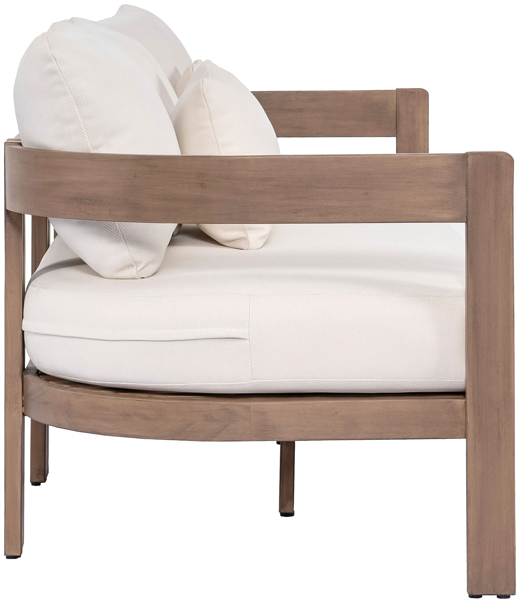 Water-resistant fabric and a natural acacia wood frame make the Newport patio sofa a standout for any outdoor setting. Built with quick-drying foam and thermowood treatment, it's designed to handle the elements without compromising style. Perfect for lounging, this contemporary piece blends casual comfort with sleek sophistication.
