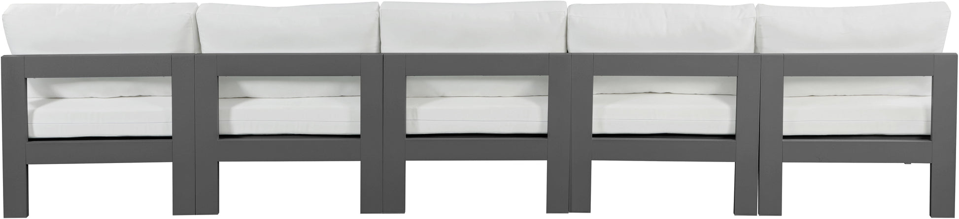 Nizuc - Outdoor Patio 5 Piece Modular Armless Sofa With Gray Frame - White