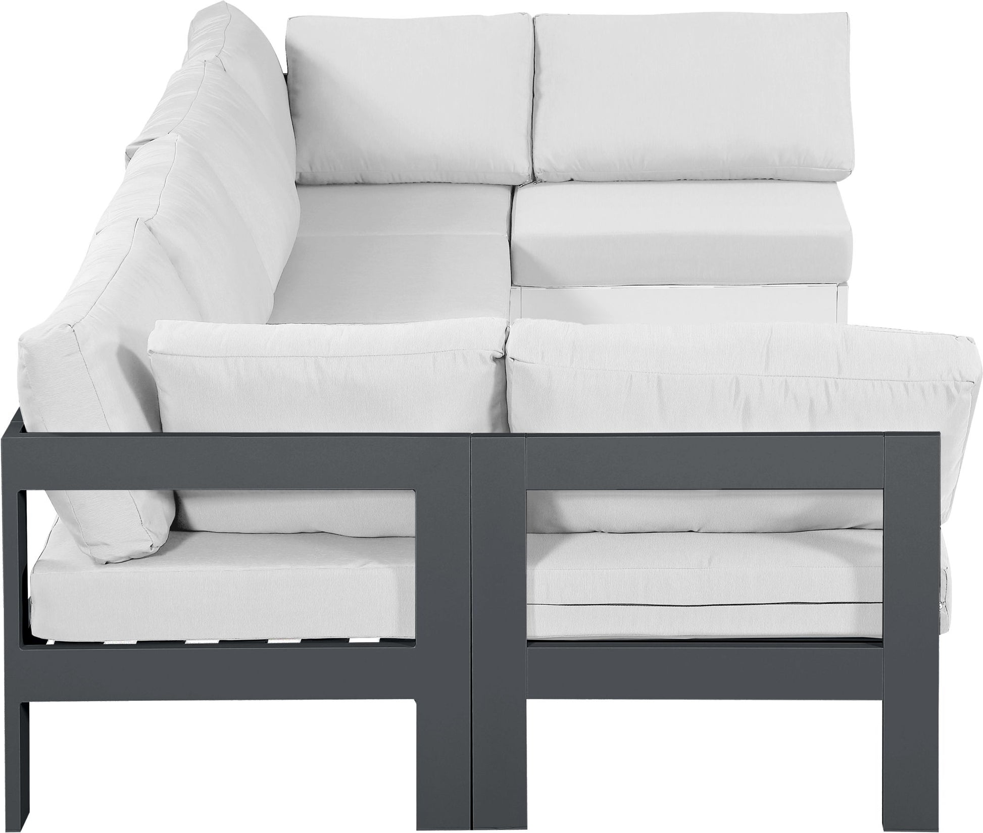 Nizuc - Outdoor Patio 6 Piece Modular U-Shaped Sectional With Gray Frame - White