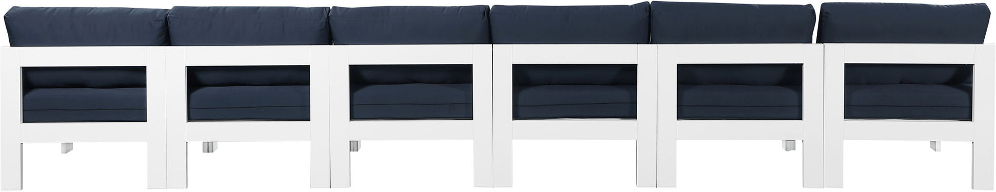 Nizuc - Outdoor Patio 6 Piece Armless Modular Sofa With White Frame - Navy