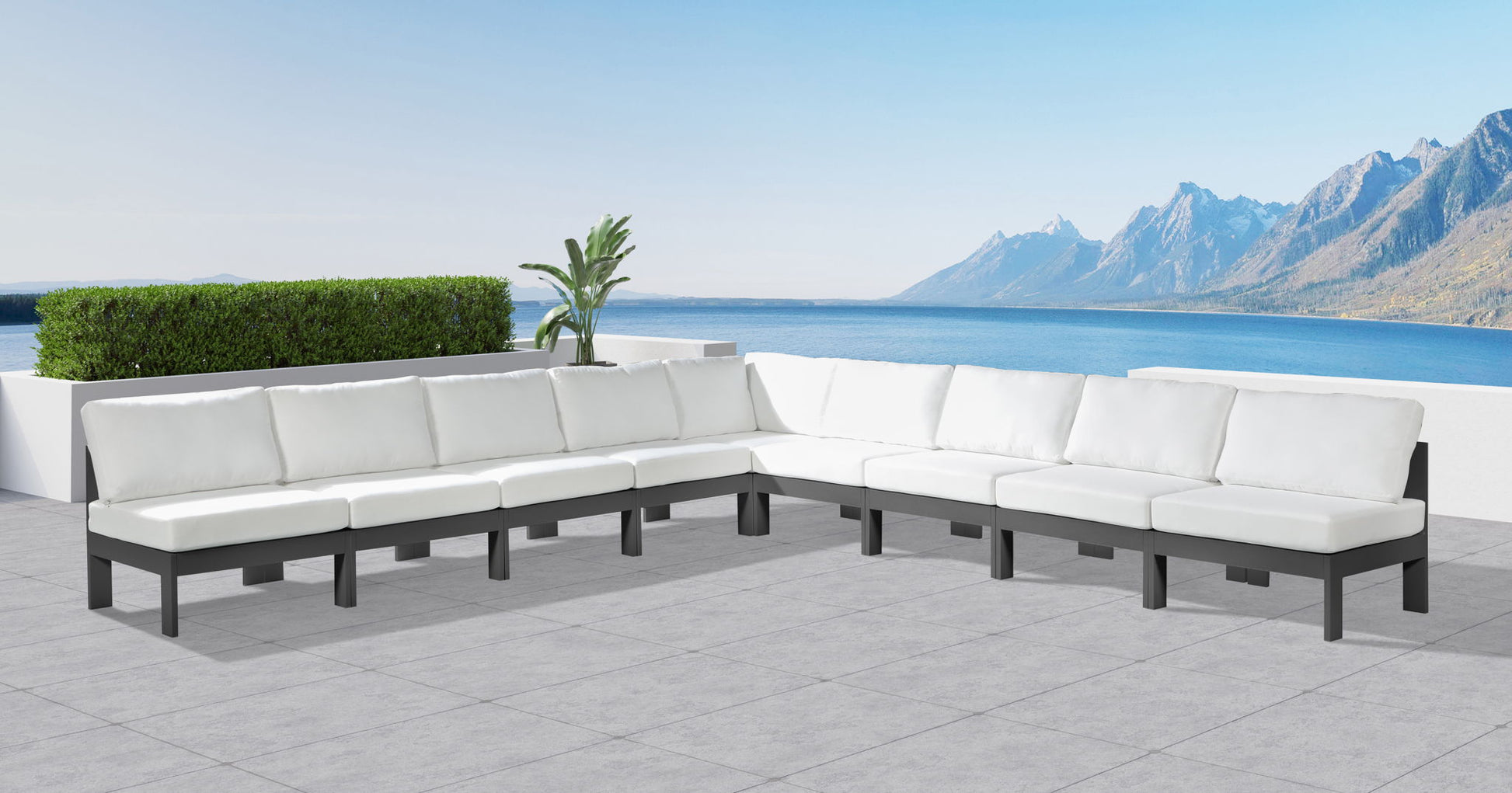 Nizuc - Outdoor Patio 9 Piece Modular Sectional With Gray Frame - White
