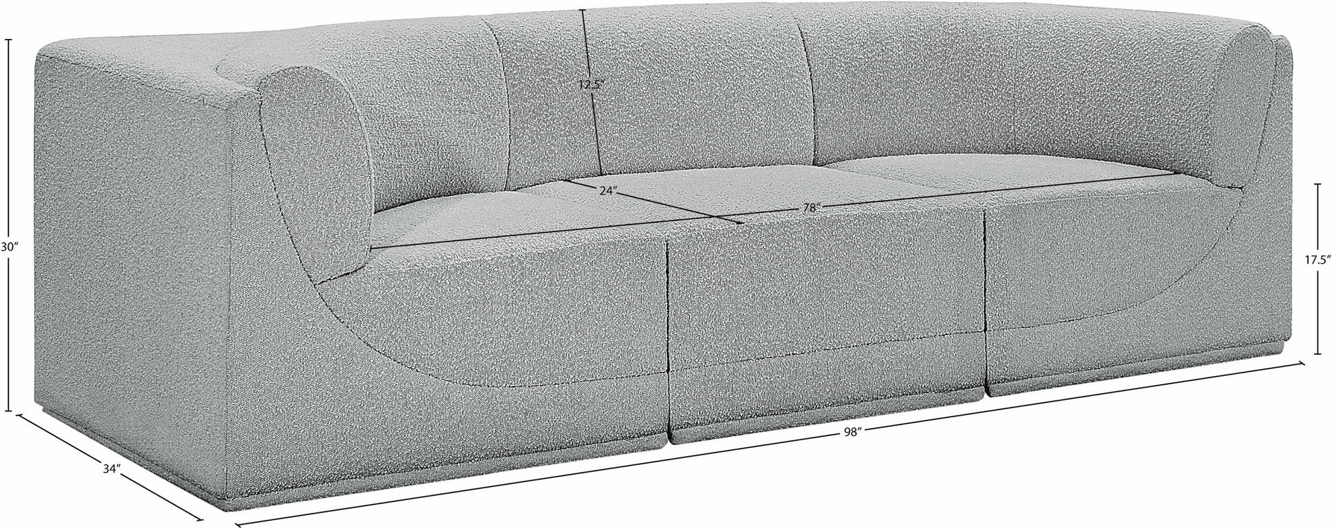 Meet the epitome of style and functionality with this Ollie boucle fabric living room sofa, part of the Ollie modular collection. A contemporary marvel, this sofa features chic and inviting rich boucle fabric upholstery, giving it a sumptuous texture that oozes elegance and luxury. Curved corners add to the visual look of the sofa while maximizing seating comfort while lounging, reading, or entertaining. Pair it with other items in the Ollie collection easily, thanks to an attachment latch underneath.