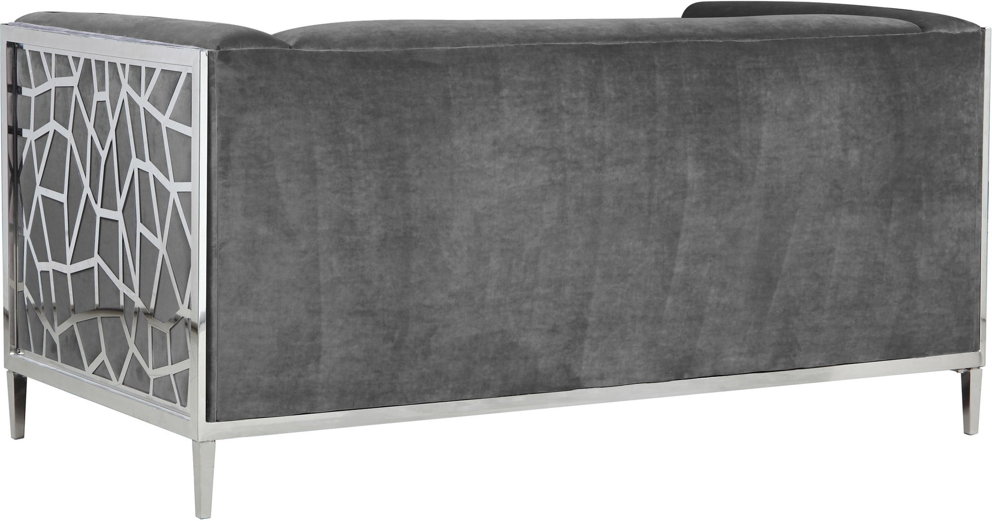 Catch the eyes of all who step foot in your home with this bold Opal velvet loveseat. Its stainless steel patterned design creates a contemporary flair against its plush, velvet upholstery, creating a home accent piece that is both comfy and stylish. Its roomy design offers ample room to kick back and relax after a long day, while its stocky shape adds a daring touch to your decor.