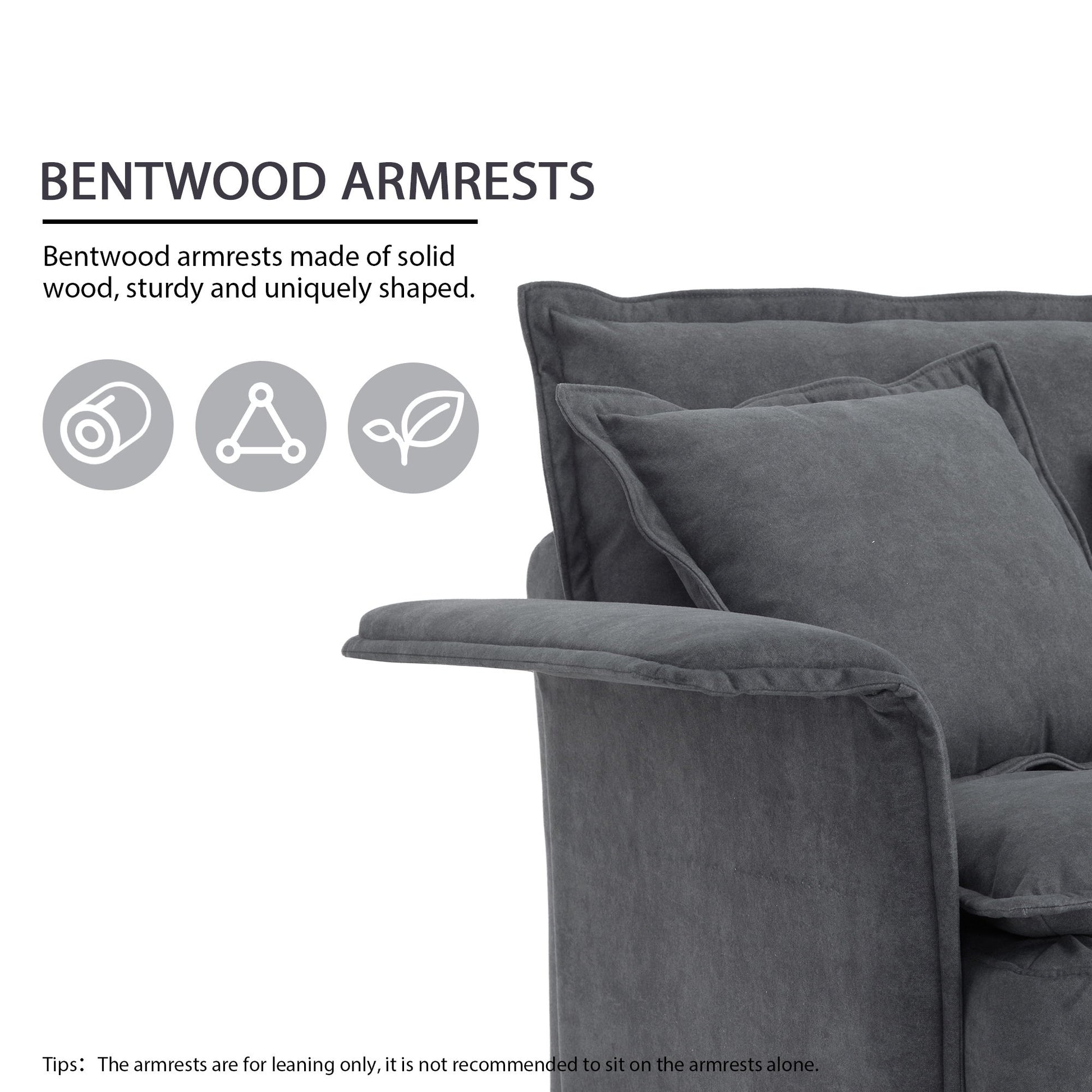 - Stylized solid wood armrest: The armrests are made of bentwood, unique in shape and design, adding elegance and natural beauty to the sofa,with good durability and stability, it can withstand long time use.