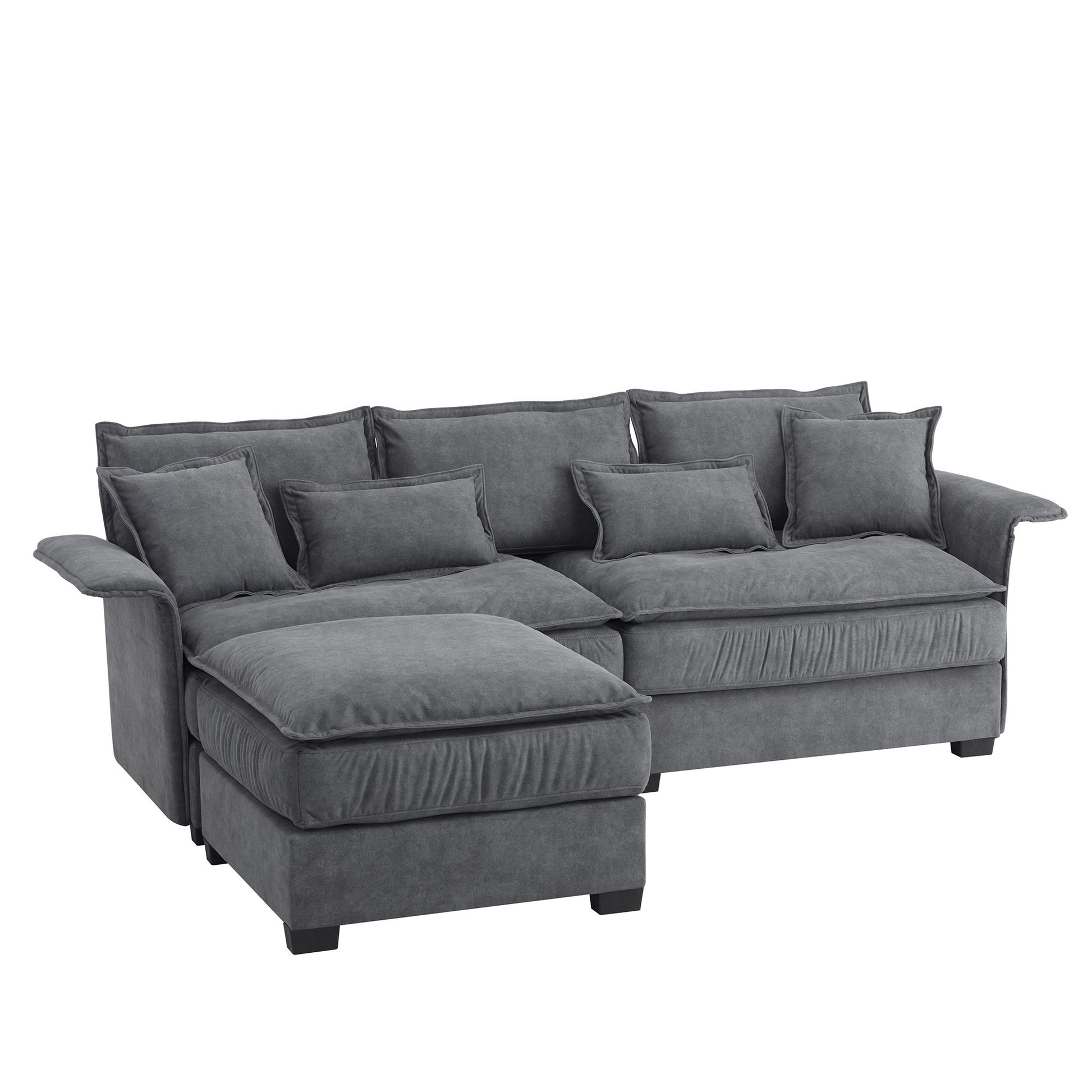 Oversized Luxury Sectional Sofa With Bentwood Armrests, 4 Seat Upholstered Indoor Furniture With Double Cushions, L Shape Couch With Ottoman - Dark Gray