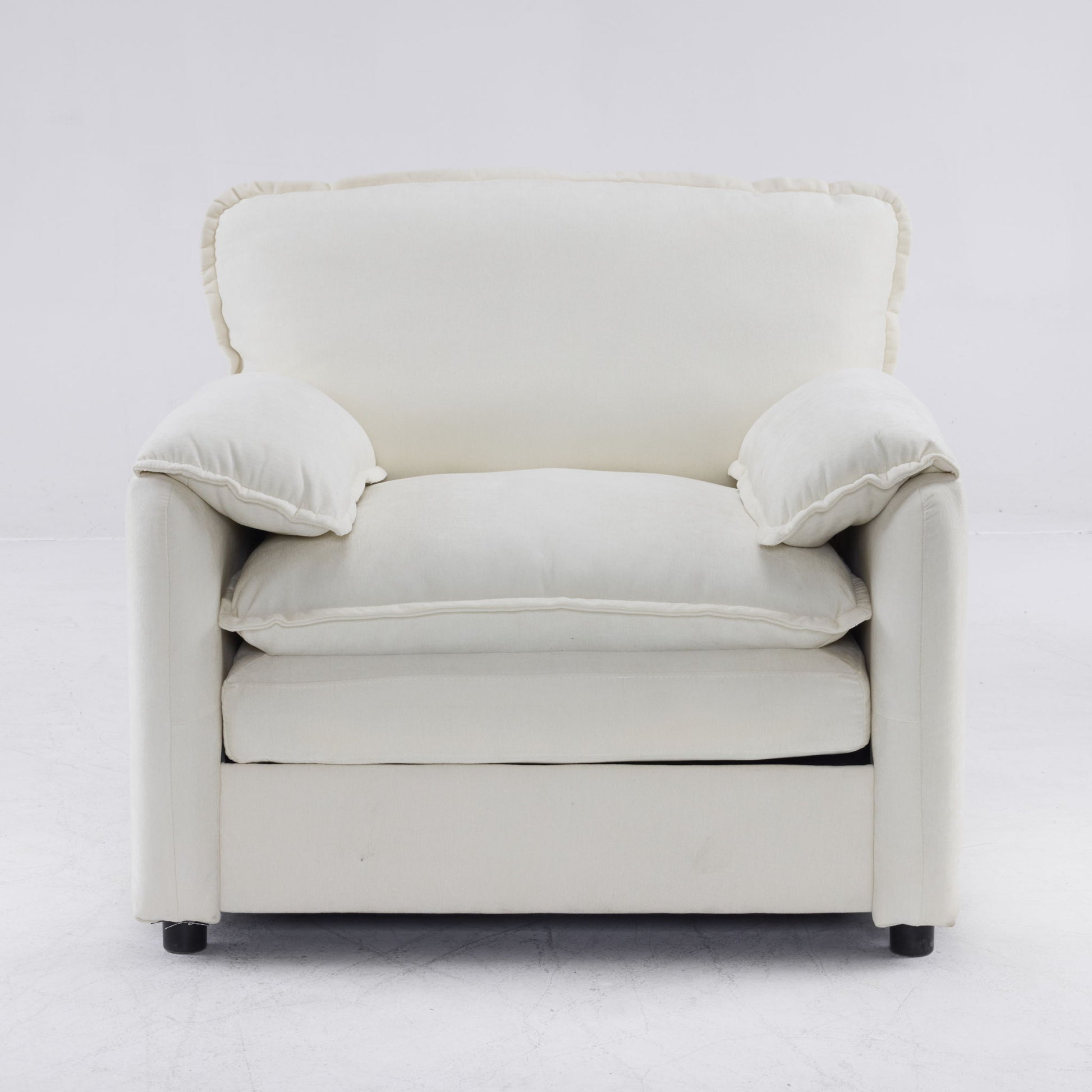Oversized Reading Armchair With Thick Cushions, High Back Support - White