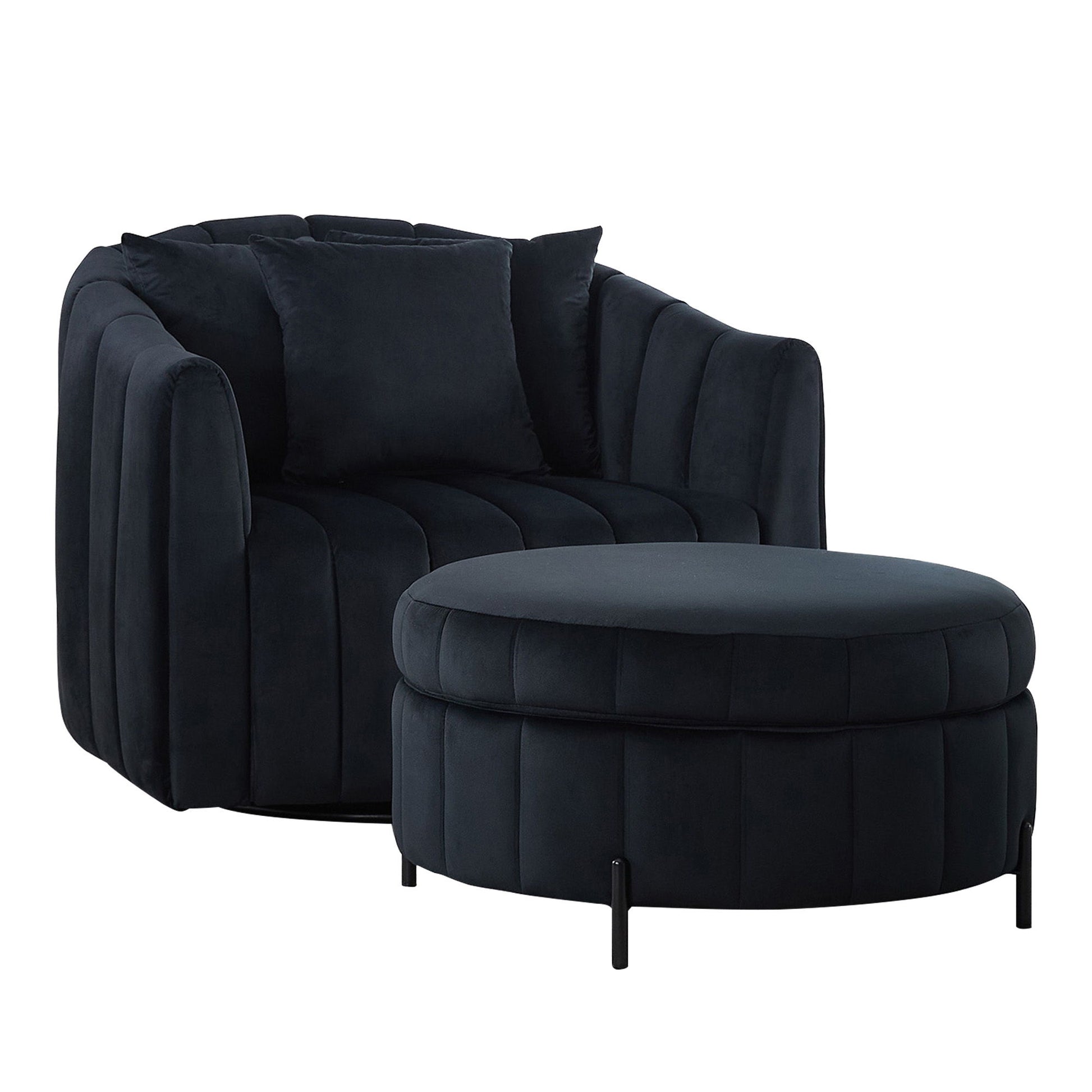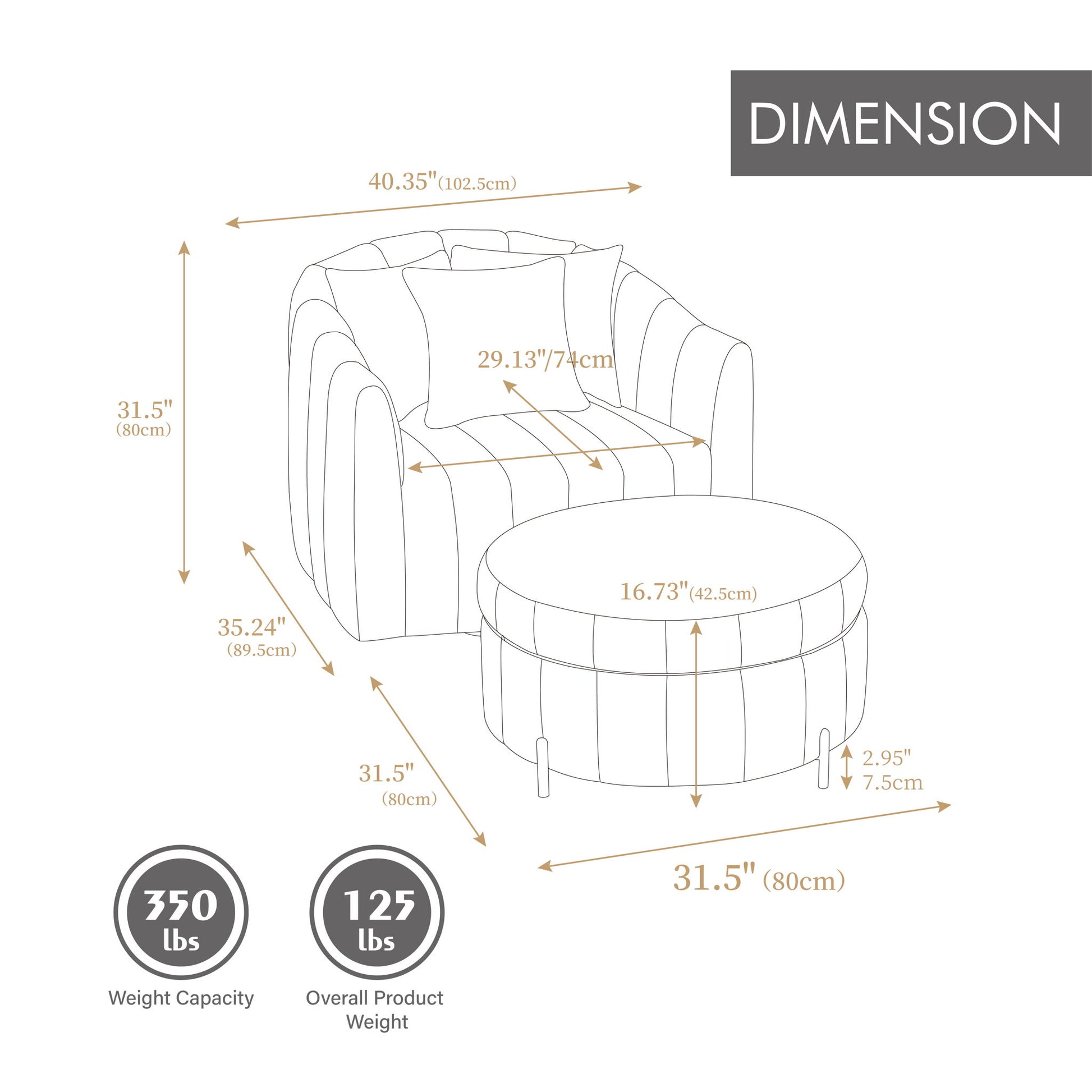 Oversized Velvet Swivel Barrel Accent Chair And Ottoman Set With Storage