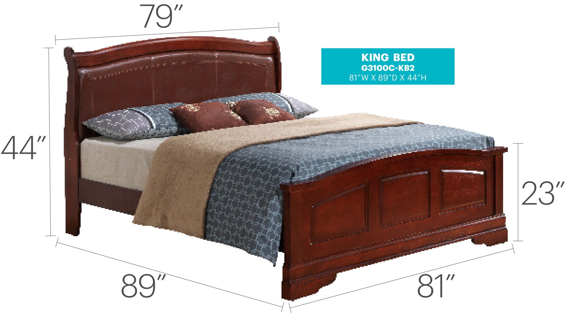 King Elegant Bed - Cherry