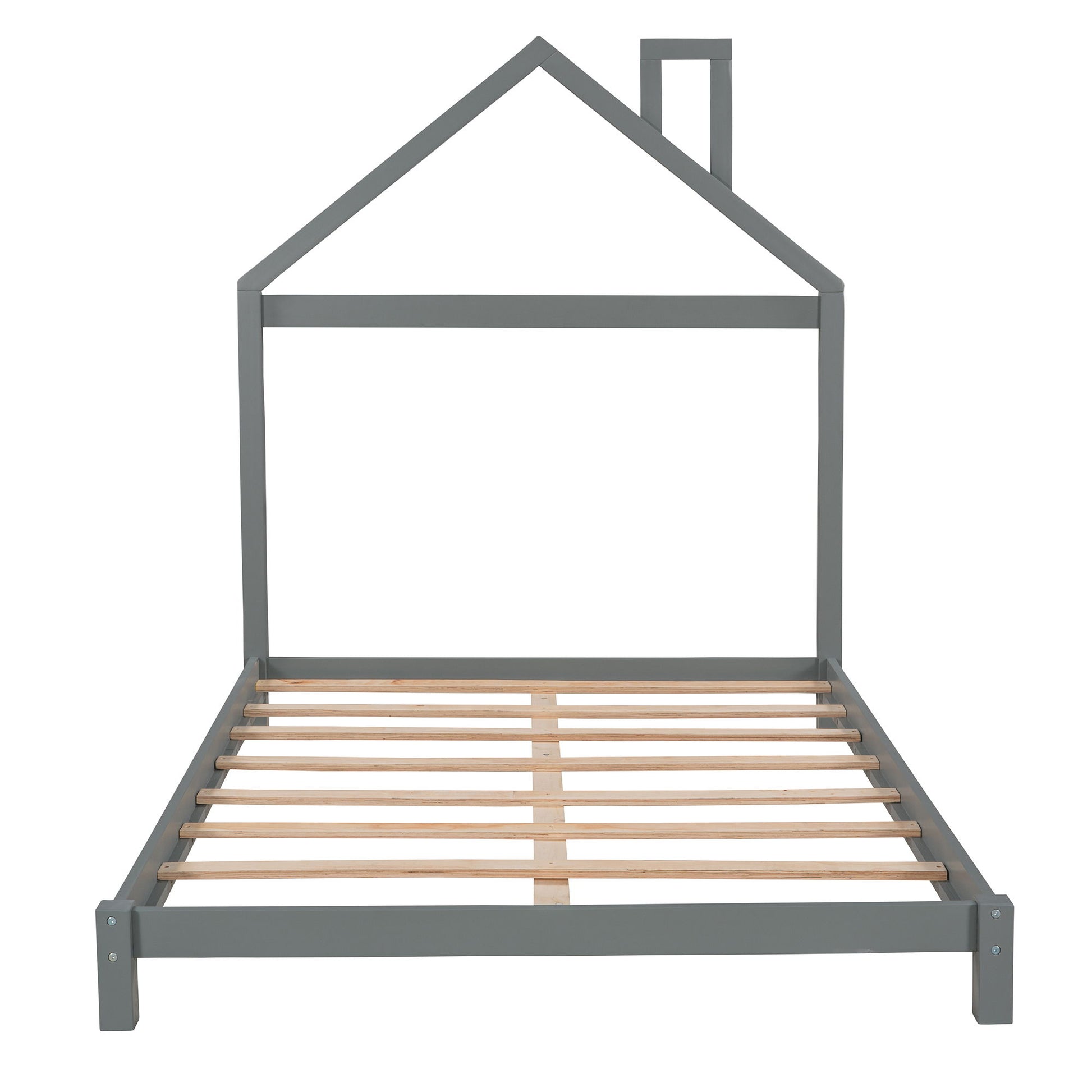 Full Size Platform Bed With House Shaped Headboard - Gray
