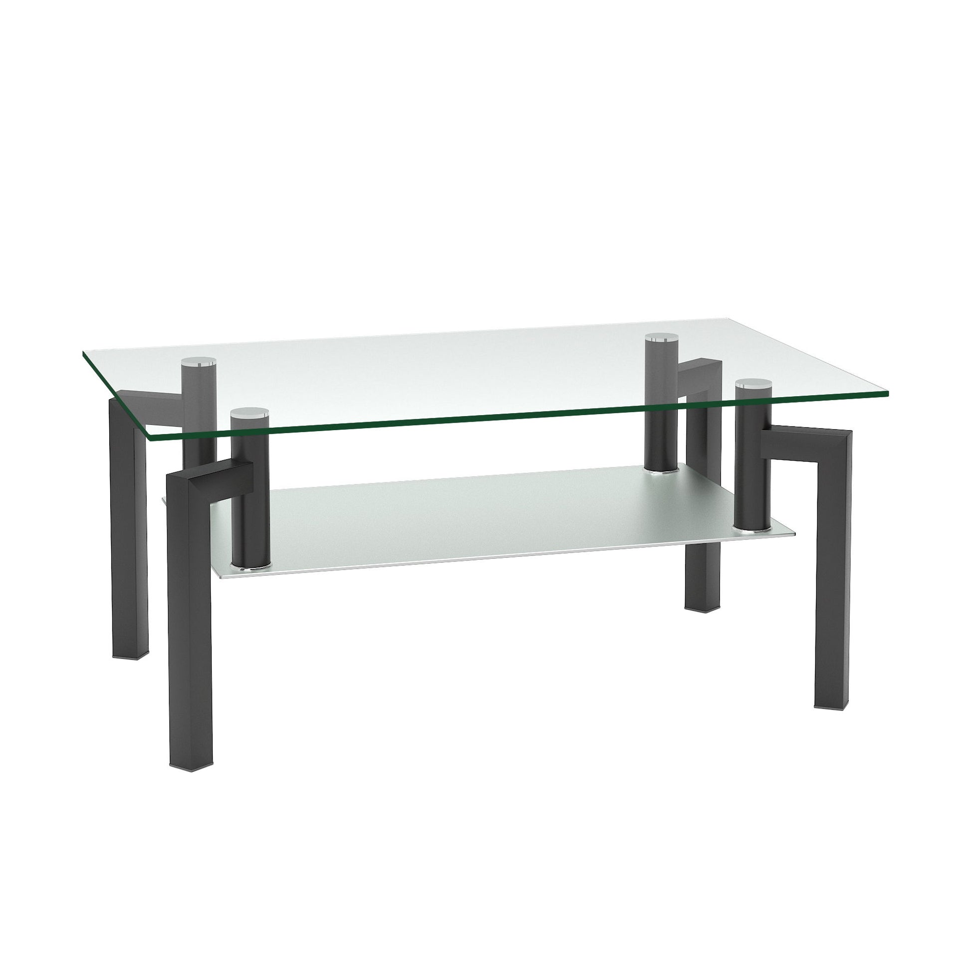 Rectangle Glass Coffee Table, Clear Coffee Table, Modern Side Center Tables For Living Room - Black
