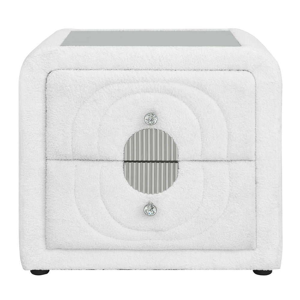 Shelyn - Nightstand - White Teddy Sherpa & Chrome