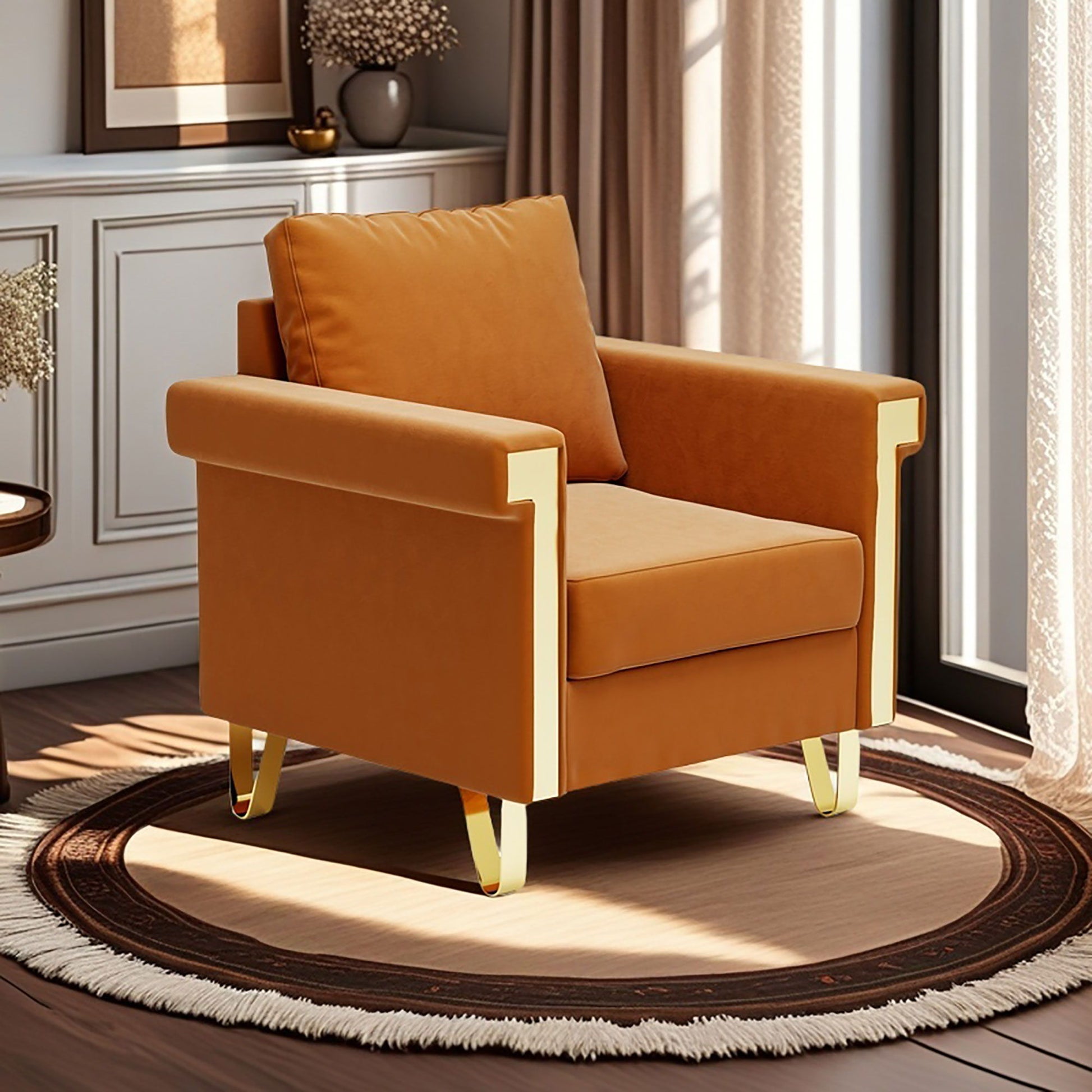 - Modern Luxury Design: Features gold accents on armrests with sturdy metal legs for a contemporary yet timeless look