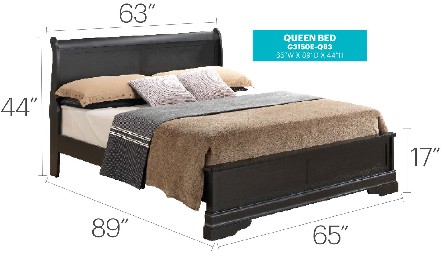 - Panel Sleigh Bed Design: Features a classic and elegant sleigh bed design with wood trim.