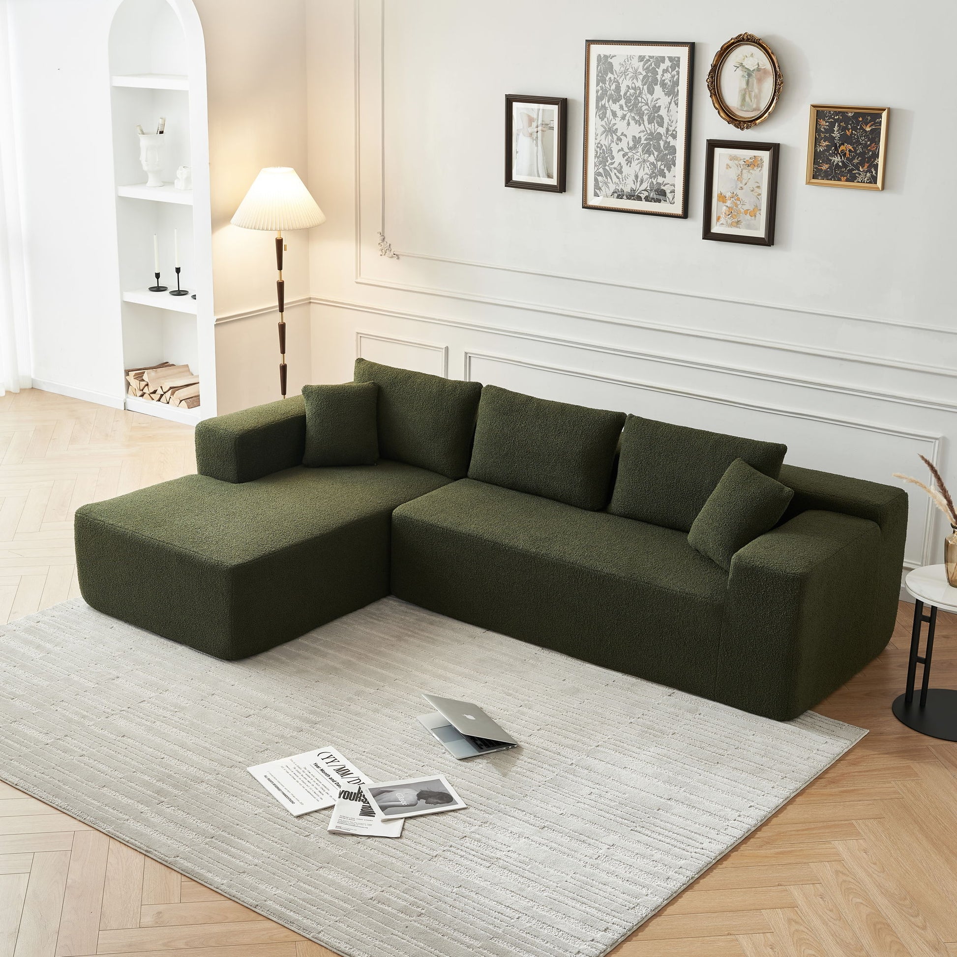 Sponge Sectional Sofa Couch For Living Room, L Shaped Modern Lamb Modular High Density Sponge Floor Sofa, Sherpa Fabric Sofa Couch With Chaise Lounge, Upholstered Corner Cloud Couch - Green