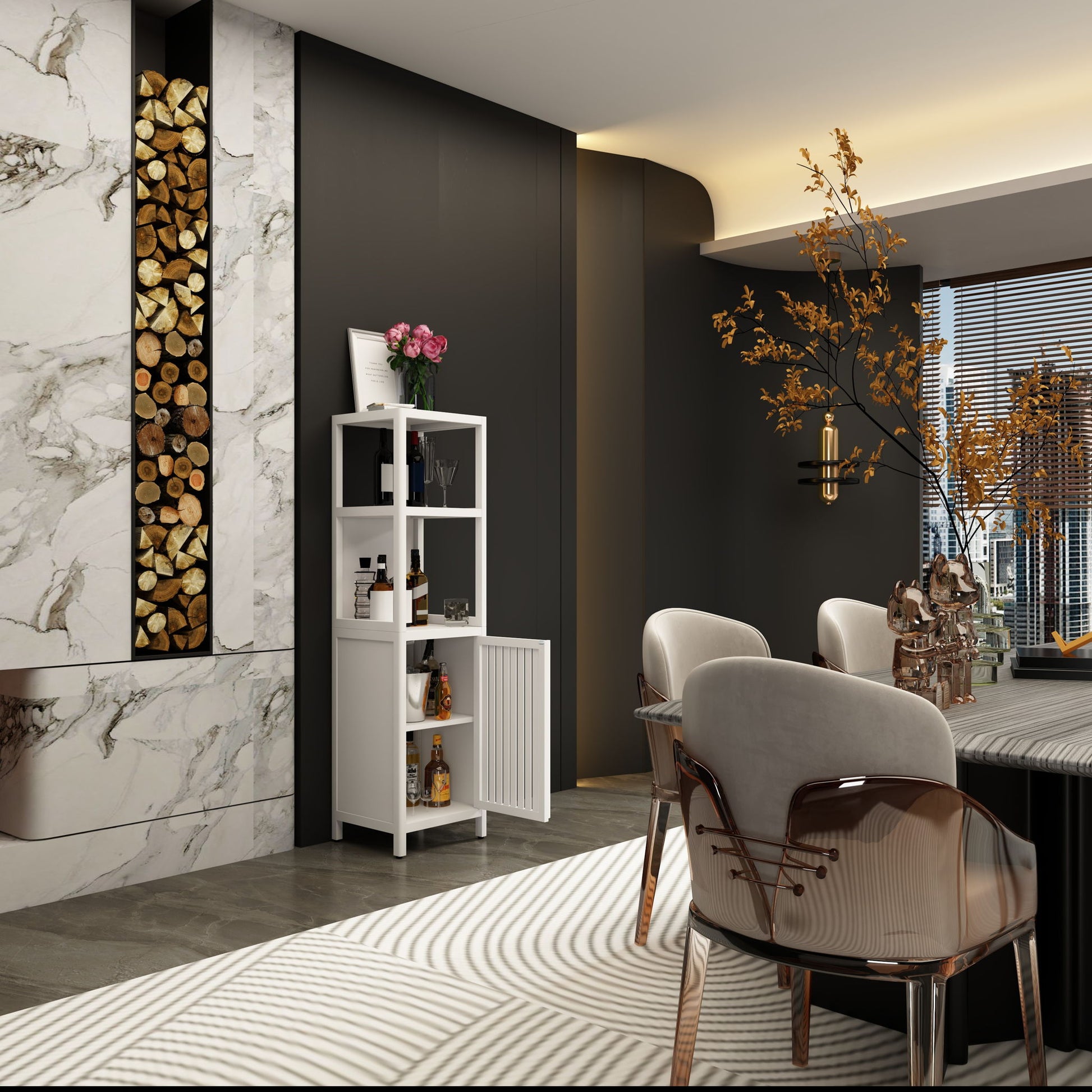 Bamboo Storage Cabinet With Tall Linen Tower, Multi Functional For Bathroom And Living Spaces - White
