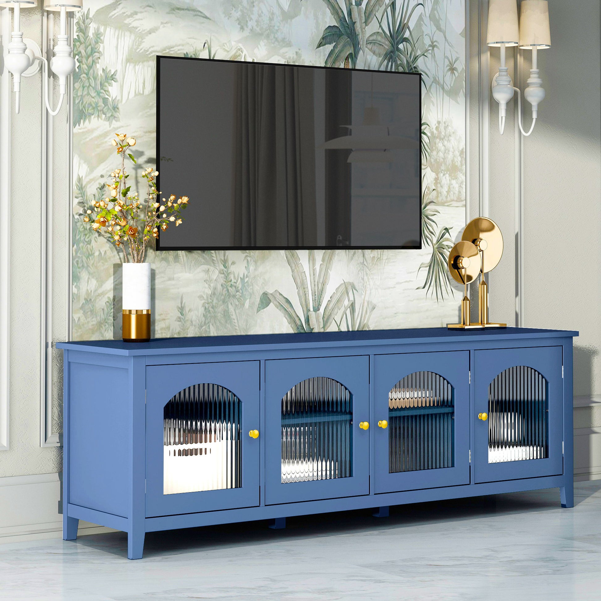 StylishTVcabinet Entertainment CenterTV Stand, TVconsoletable, Media Console, Solidwood Frame, Changhong Glass Door, Metal Handle - Antique Blue