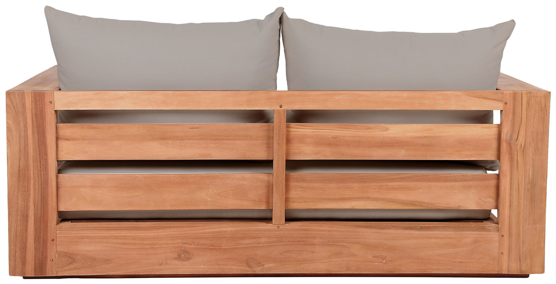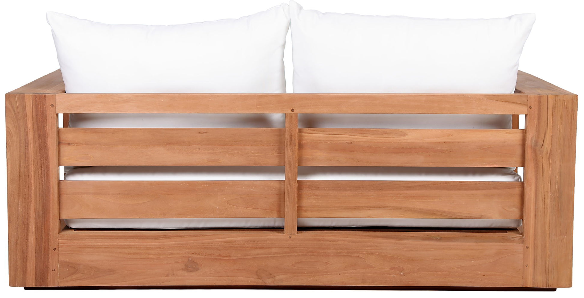 Make this Tulum teak outdoor patio loveseat the go to spot for relaxing and entertaining guest in your outdoor space. This loveseat features resilient water resistant fabric making it the perfect spot to rest your feet and enjoy the company of friends or family while you take in the sunrise. Teak construction makes it a tough addition for the patio or porch and gives it the longevity and durability it needs to weather the elements with beautiful ease. Pair it with other items from the Tulum collection for a look that impresses from every angle.