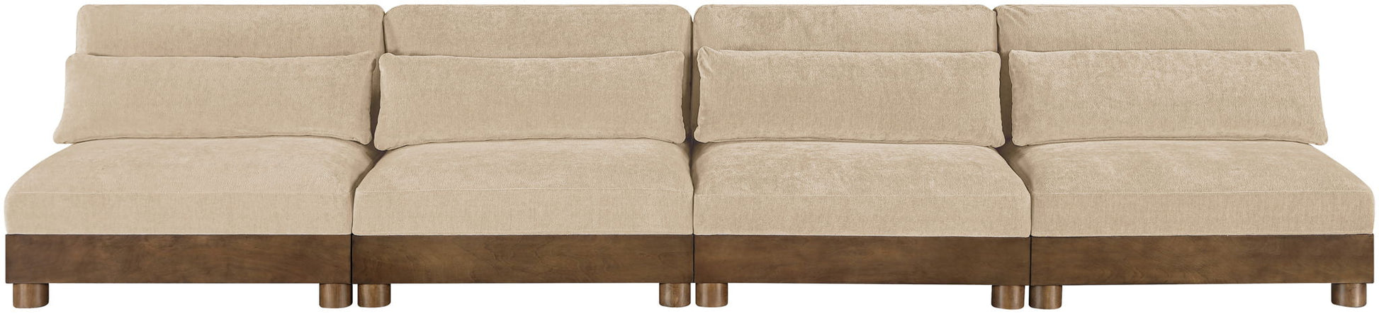 Turin - 160" Chenille Fabric Upholstered 4 Piece Modular Sofa (4 Armless Chairs) - Beige / Brown Walnut