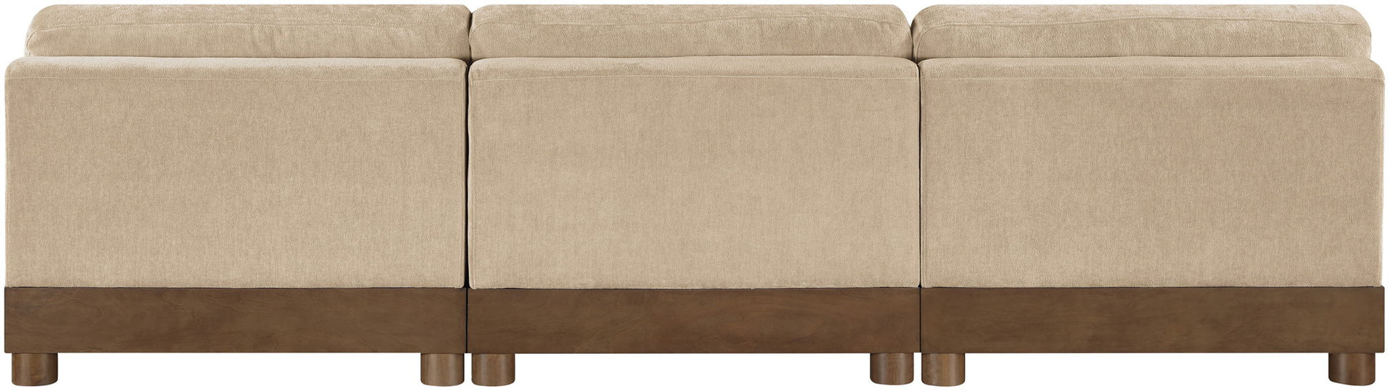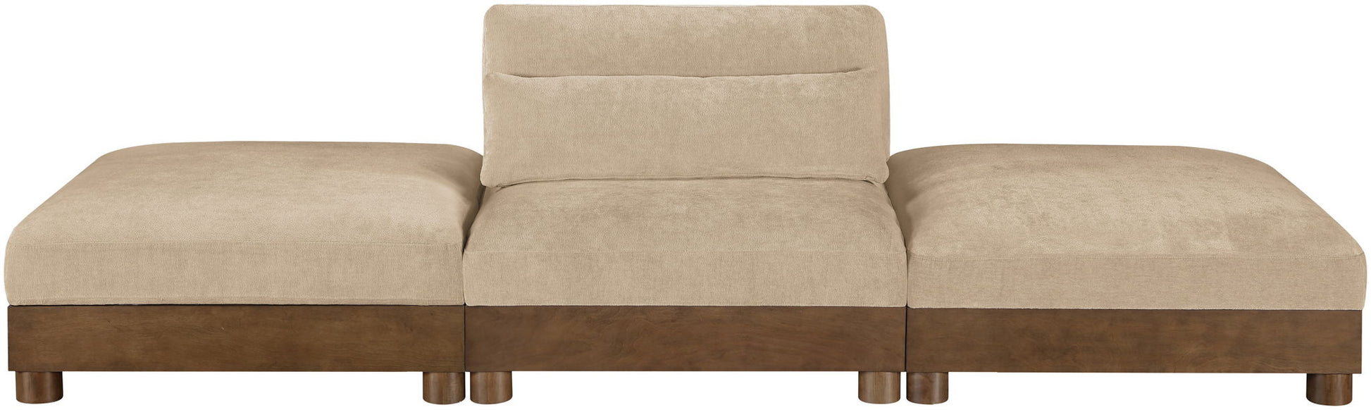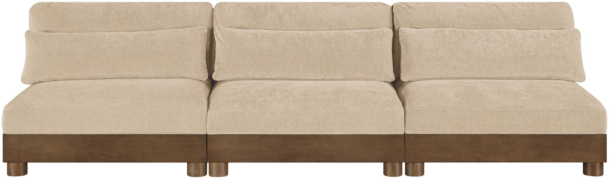 Turin - 120" Chenille Fabric Upholstered 3 Piece Modular Sofa (3 Armless Chairs) - Beige / Brown Walnut