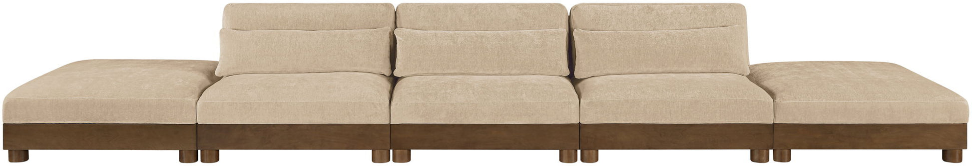 Turin - 200" Chenille Fabric Upholstered 5 Piece Modular Sofa - Beige / Brown Walnut