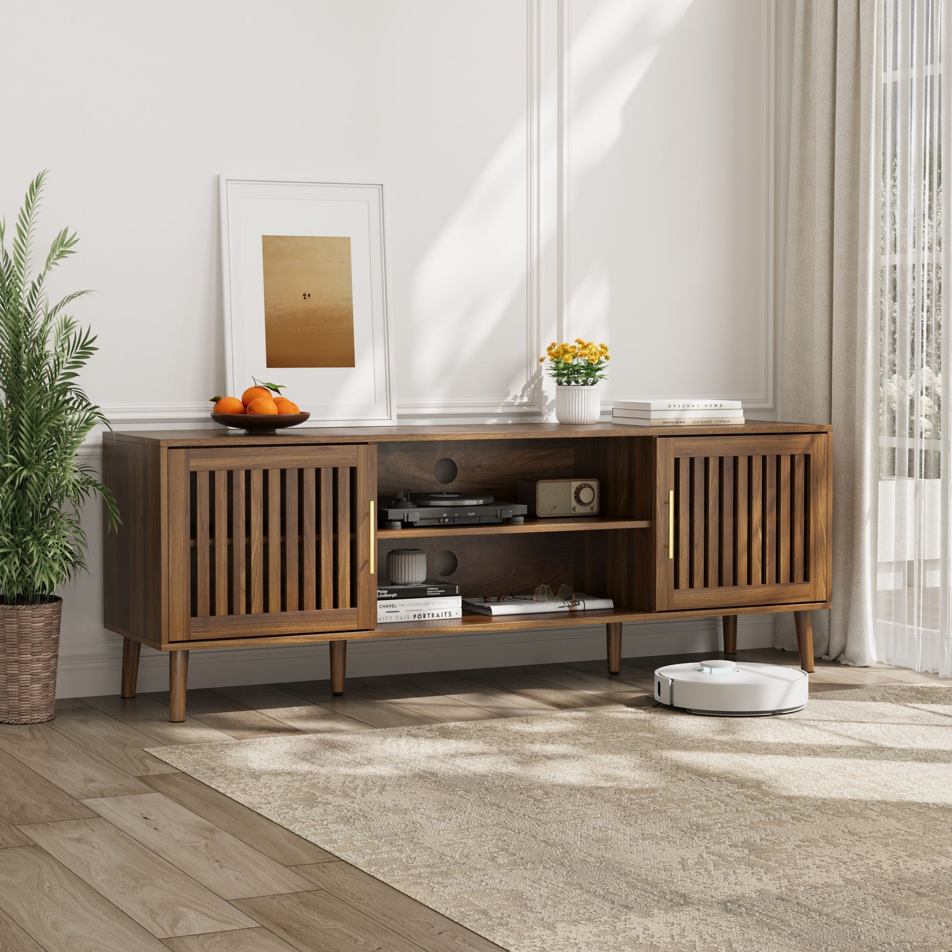 TV Stand With 2 Grille Door Cabinets And Adjustable Storage Rack, Suitable For Medieval Modern TV Cabinets, Entertainment Center With Storage Space - Walnut Wood