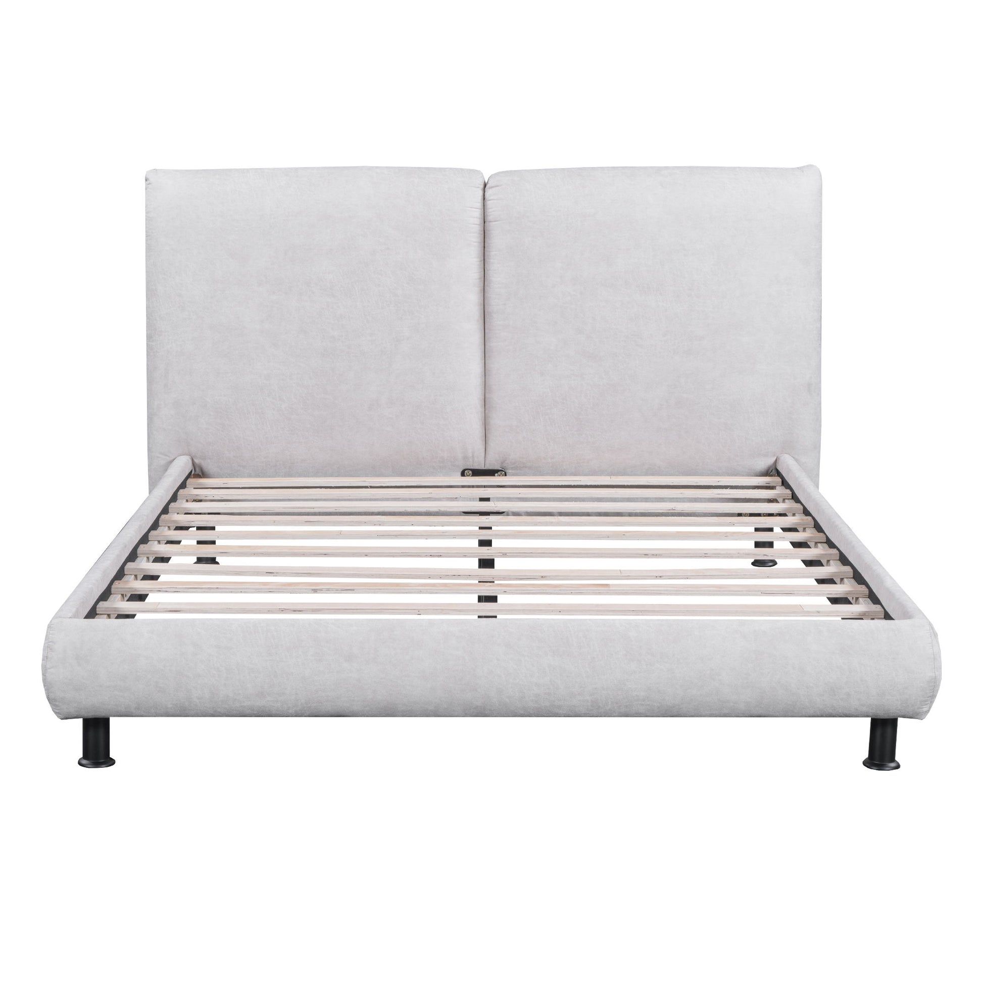 Queen Size Upholstered Platform Bed With 2 Large Headrests And Thick - Gray