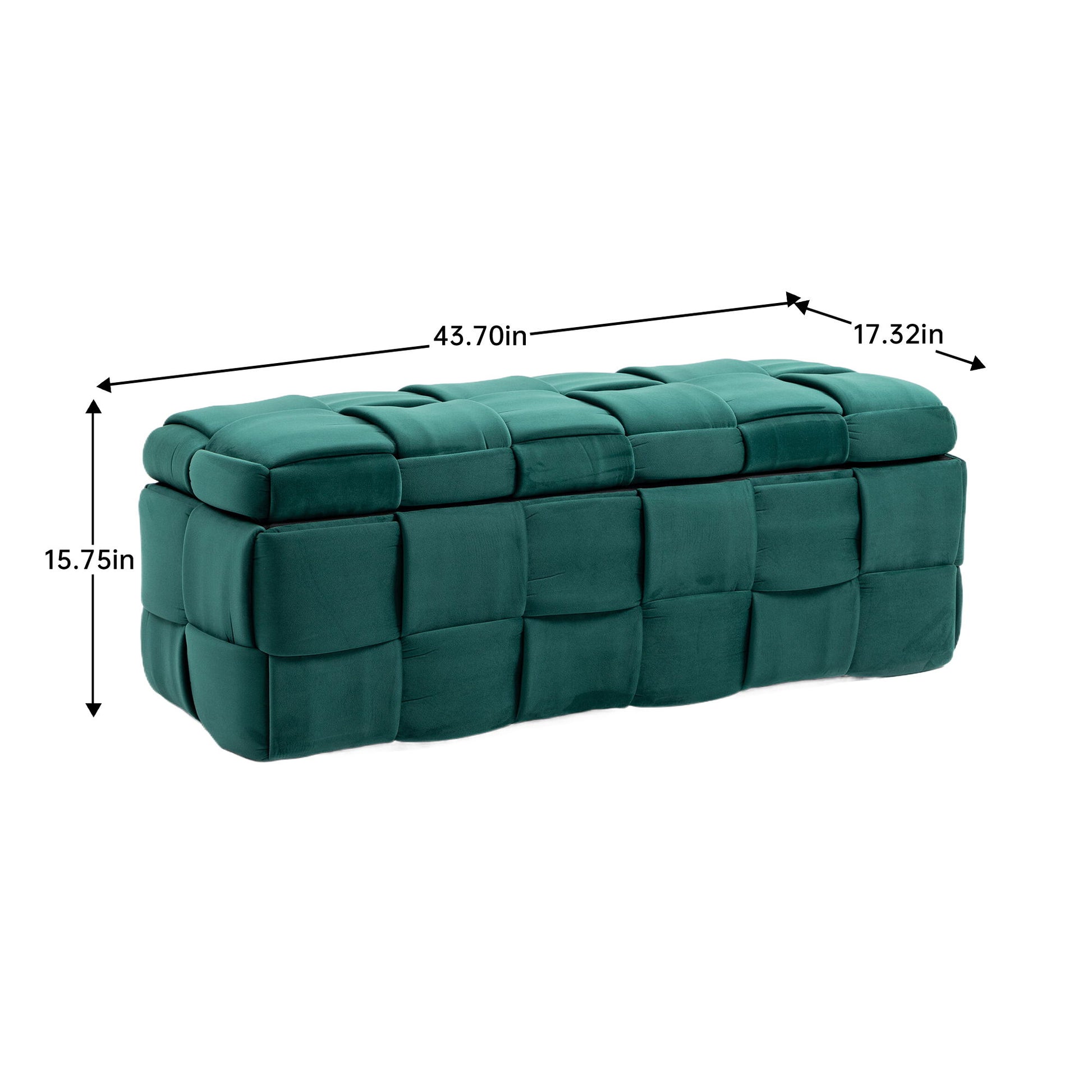 Upholstered Fabric Storage Ottoman Bench With Safety Hinge For Living Room & Bedroom - Green