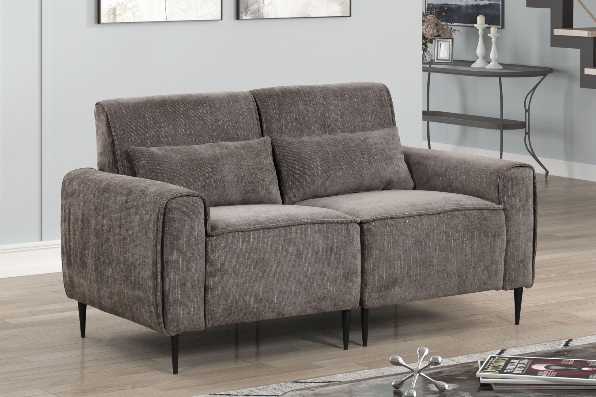 Valentina - Chenille Loveseat With Metal Legs And Throw Pillows - Gray