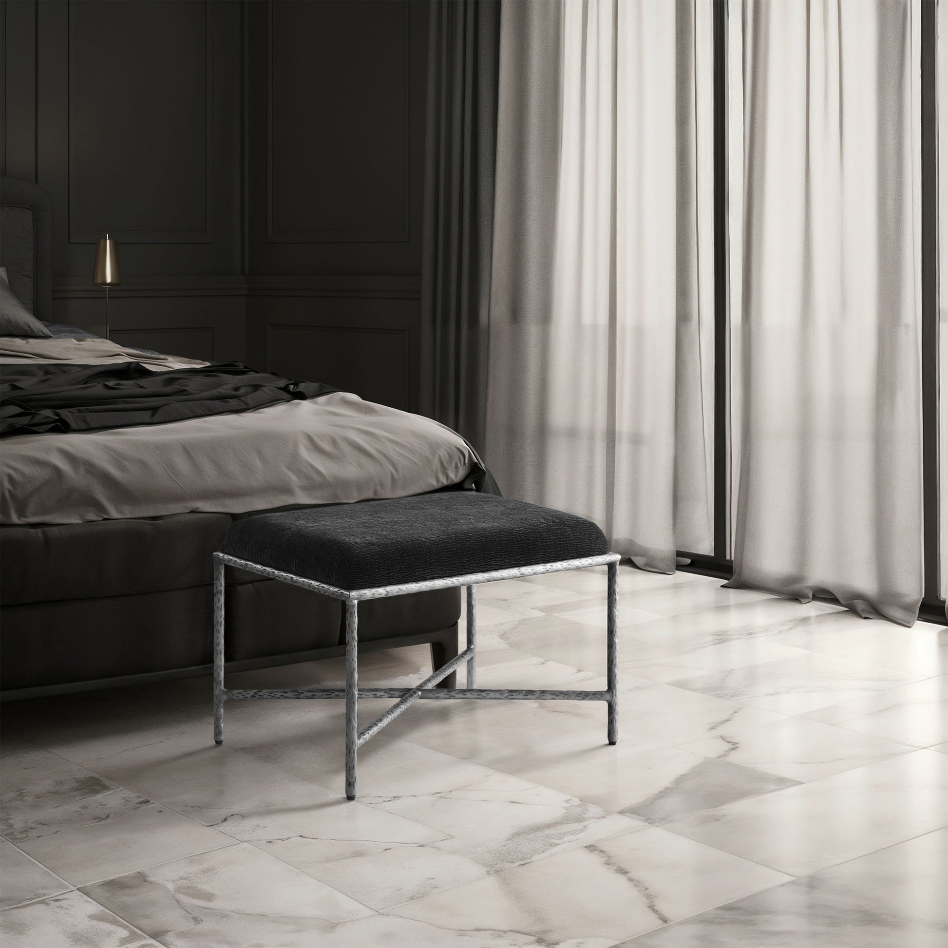 Valley - 25" Bench With Silver Frame - Black