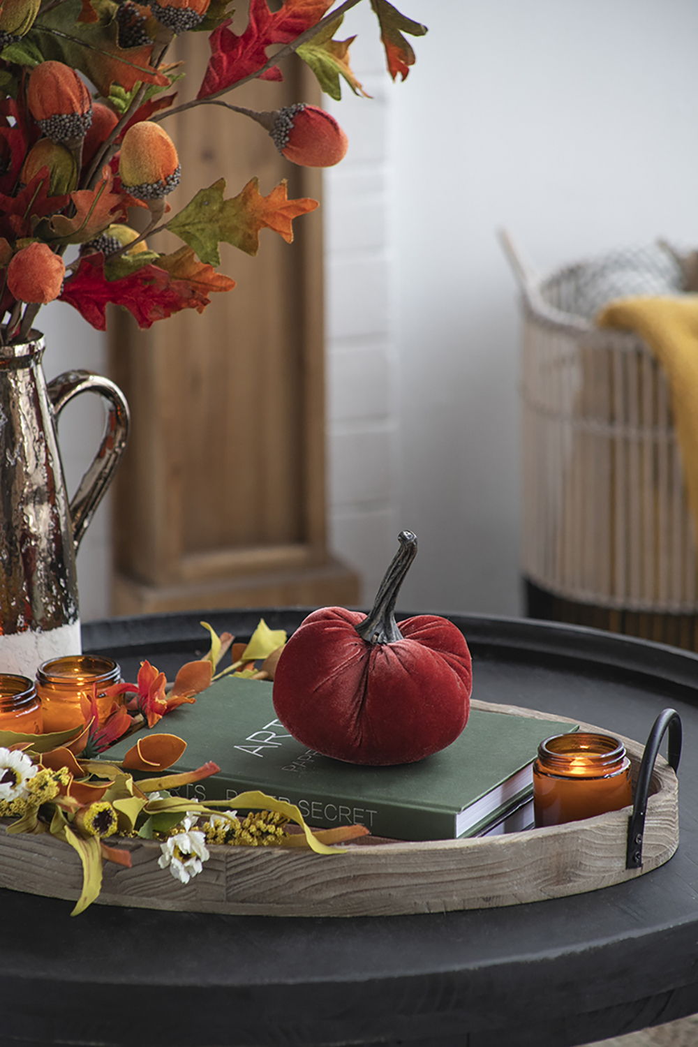Velvet Weighted Pumpkin With Resin Stem Rusty (Set of 4) - Red