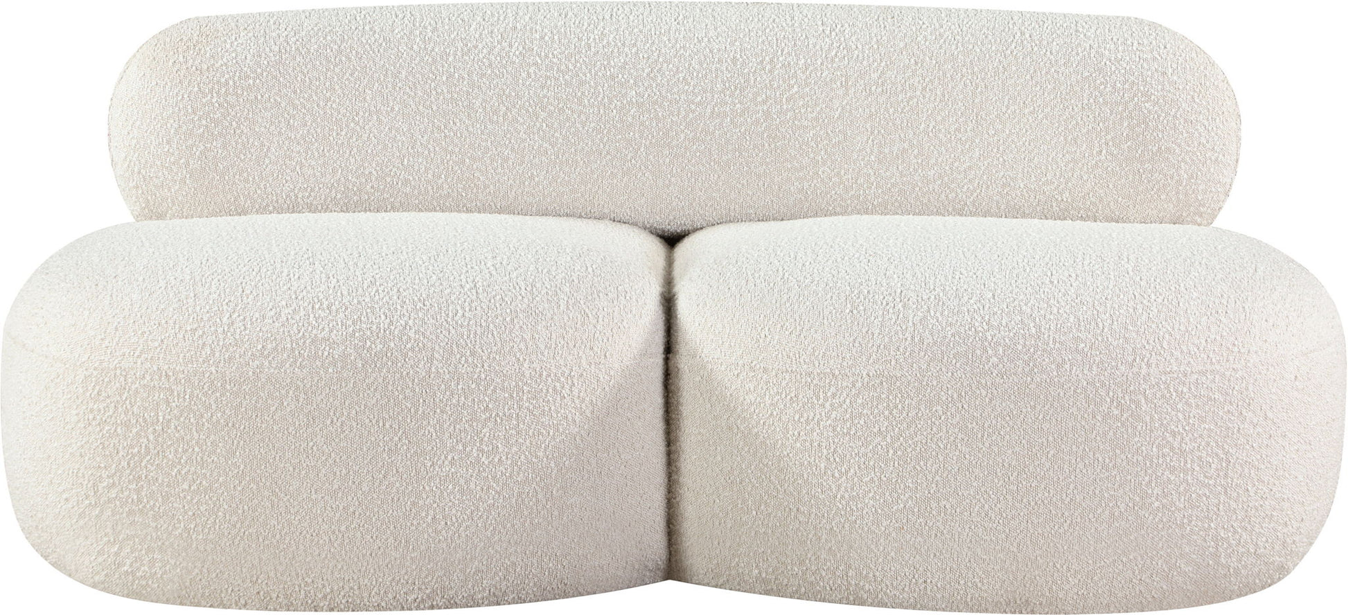 Discover timeless beauty with this Venti boucle fabric living room loveseat that's designed to elevate your interior space. This exceptionally crafted art-deco-inspired chair is part of the Venti collection and boasts an alluring curved shape to add elegance and refinement to your room. Upholstered in rich boucle fabric, the loveseat has a plush texture that's oh-so-cozy against the skin. The art deco styling makes it a real statement piece, whether you place it in your living room, home office, or your favorite reading nook.