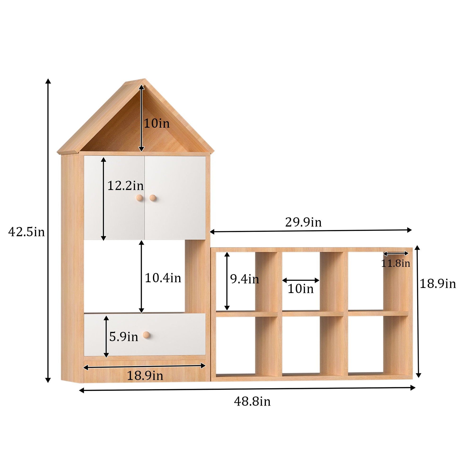 Versatile Children's Bookshelf With House Shaped Design, Multi Functional Storage