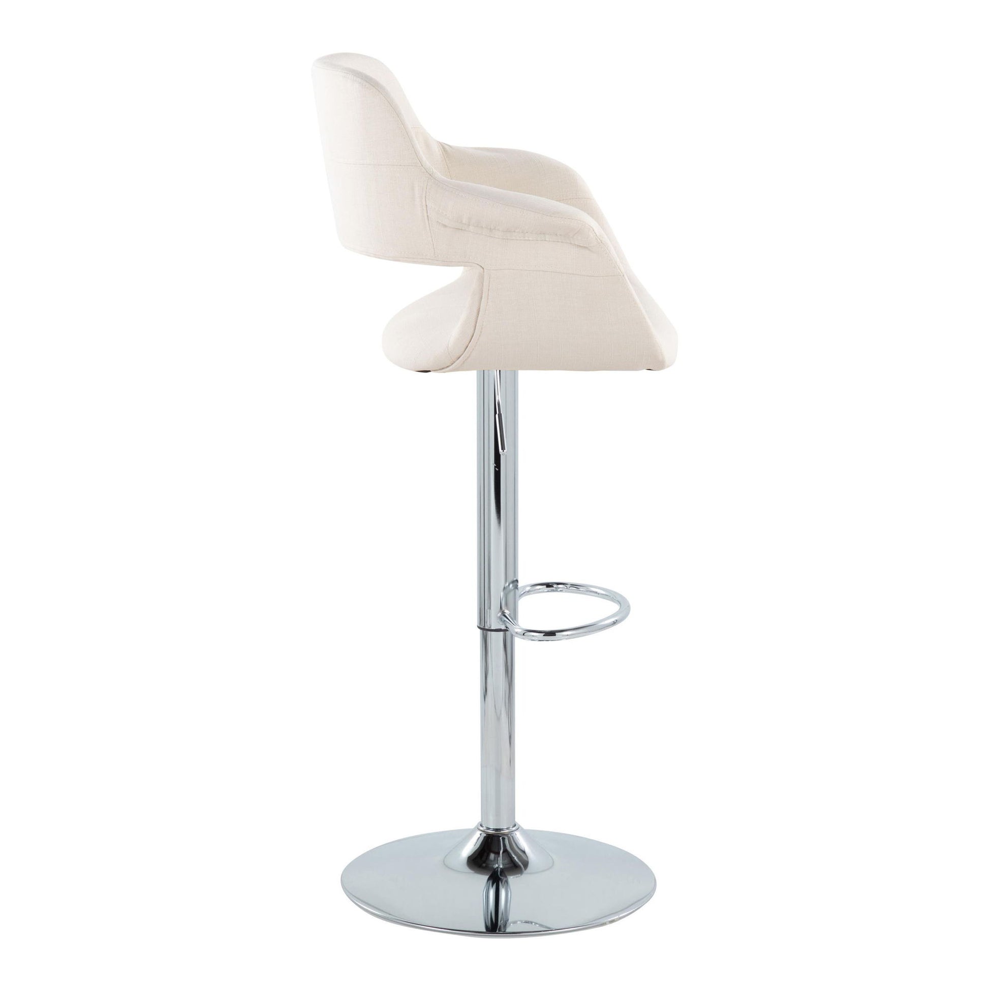 Vintage Flair - Mid-Century Modern Adjustable Barstool With Oval Footrest (Set of 2) - Chrome / Cream