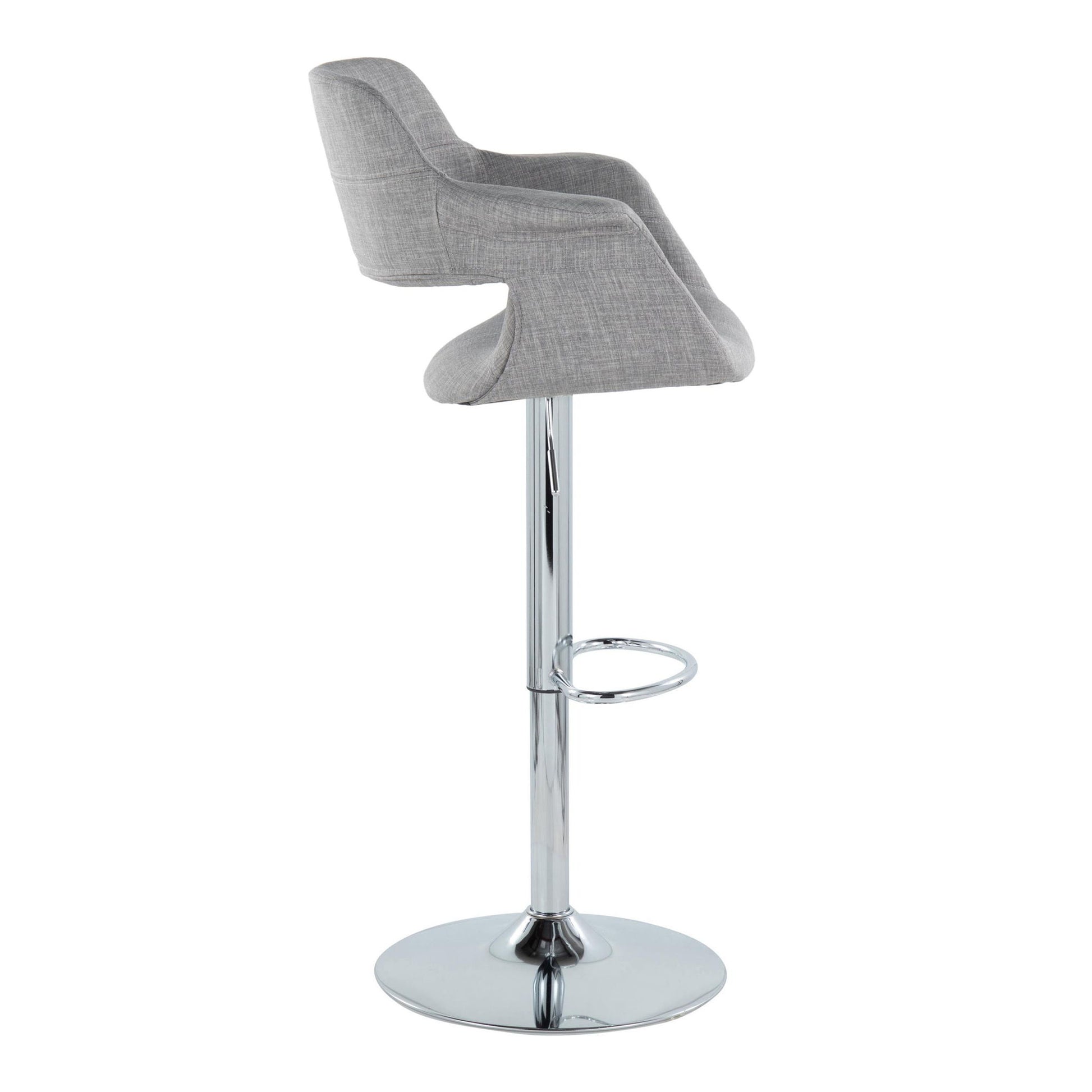 Vintage Flair - Mid-Century Modern Adjustable Barstool With Oval Footrest (Set of 2) - Chrome / Light Gray
