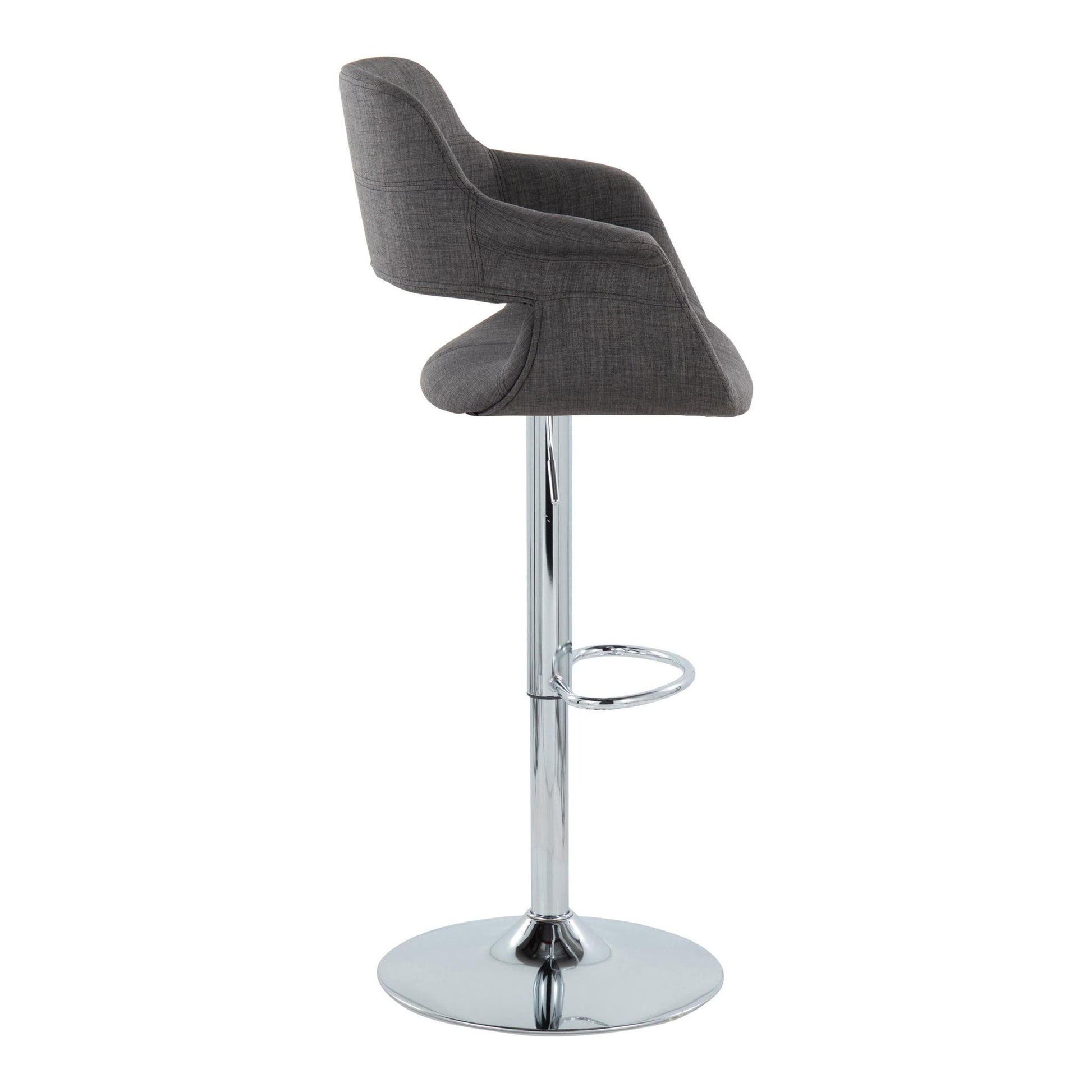Vintage Flair - Mid-Century Modern Adjustable Barstool With Oval Footrest (Set of 2) - Chrome / Charcoal