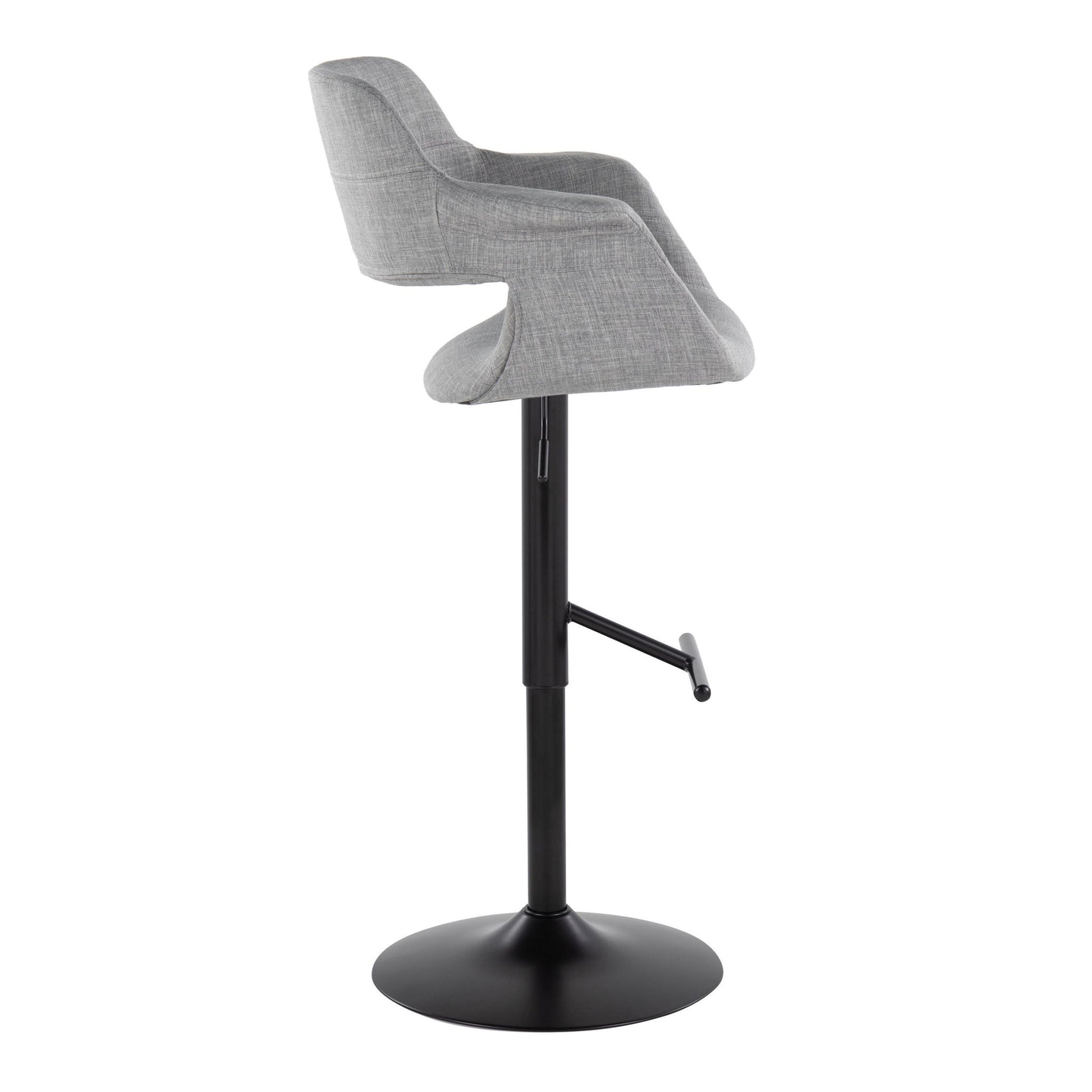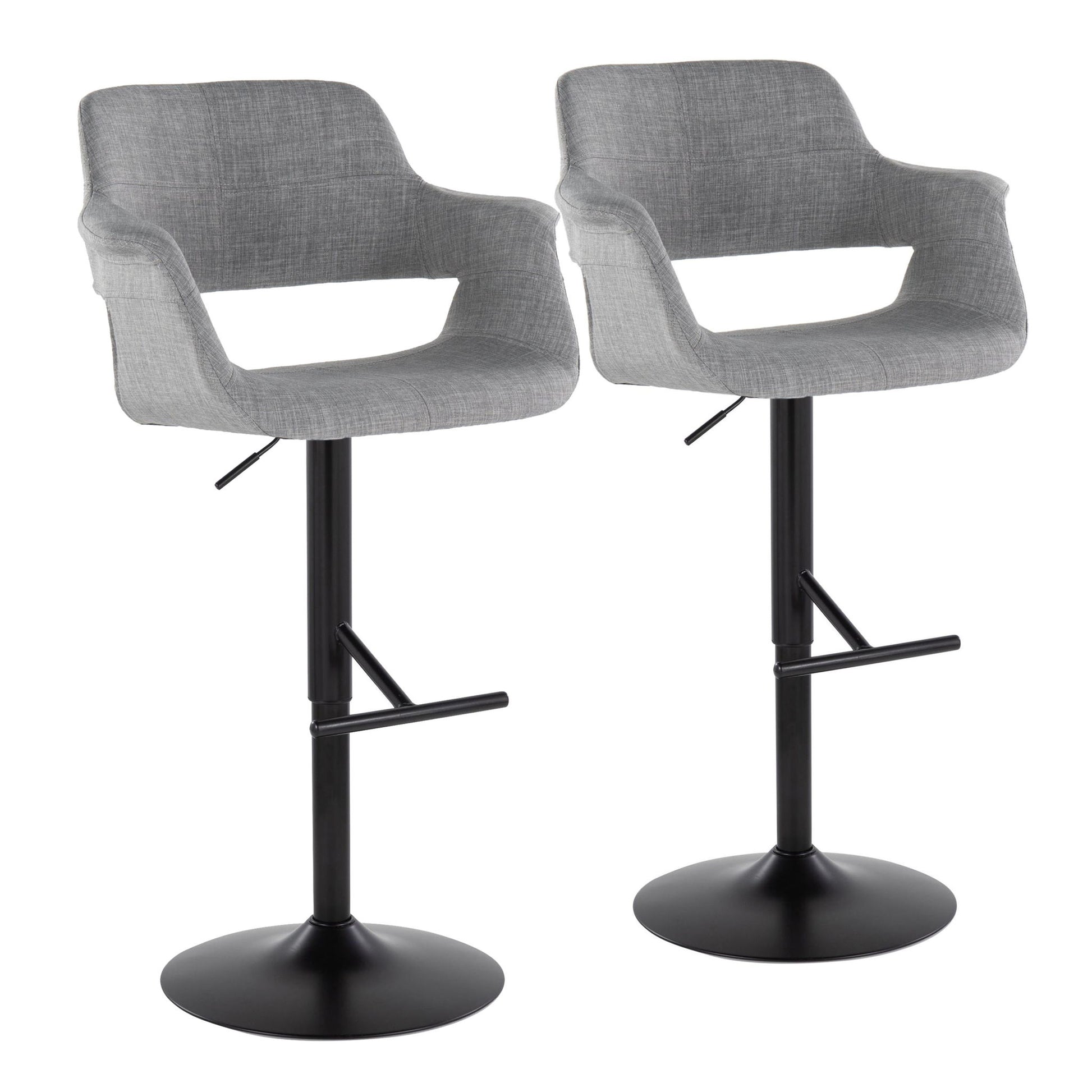 Vintage Flair - Mid-Century Modern Adjustable Barstool With Straight T Footrest (Set of 2) - Black / Light Gray