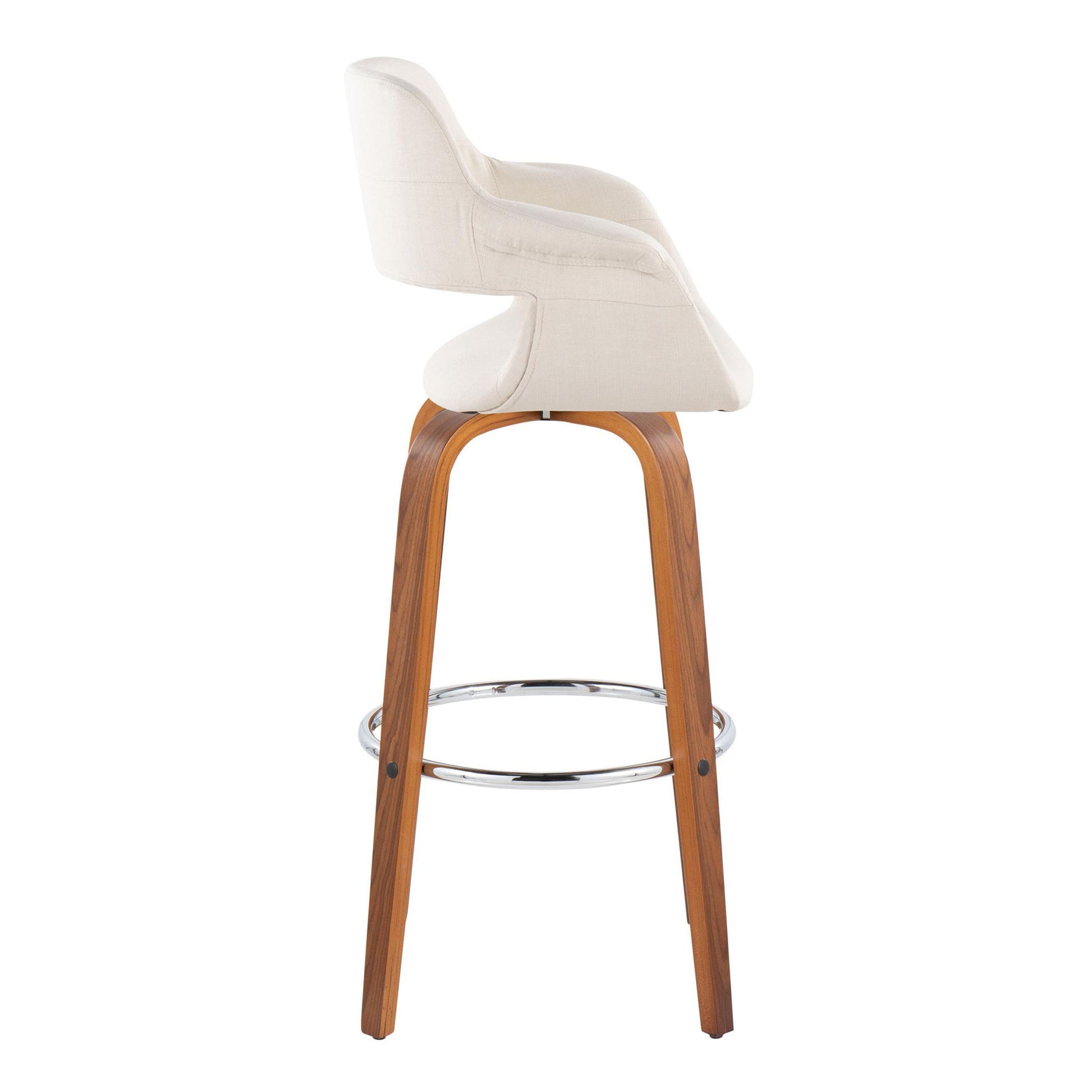 Vintage Flair - Mid-Century Modern Fixed Height Barstool With Swivel & Round Footrest (Set of 2) - Walnut / Cream