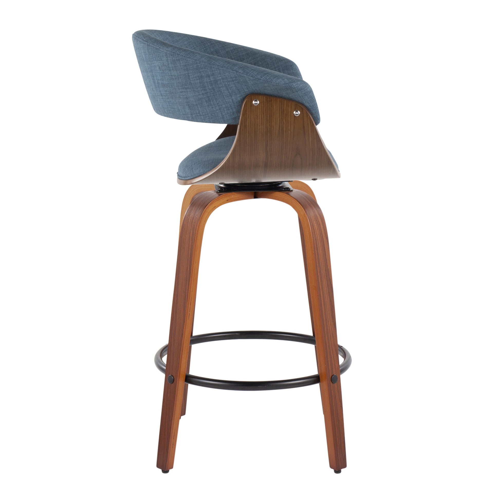 Vintage Mod - Mid-Century Modern Fixed Height Counter Stool With Swivel & Round Footrest (Set of 2) - Walnut / Blue